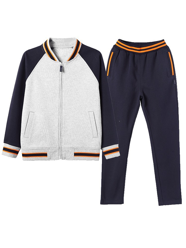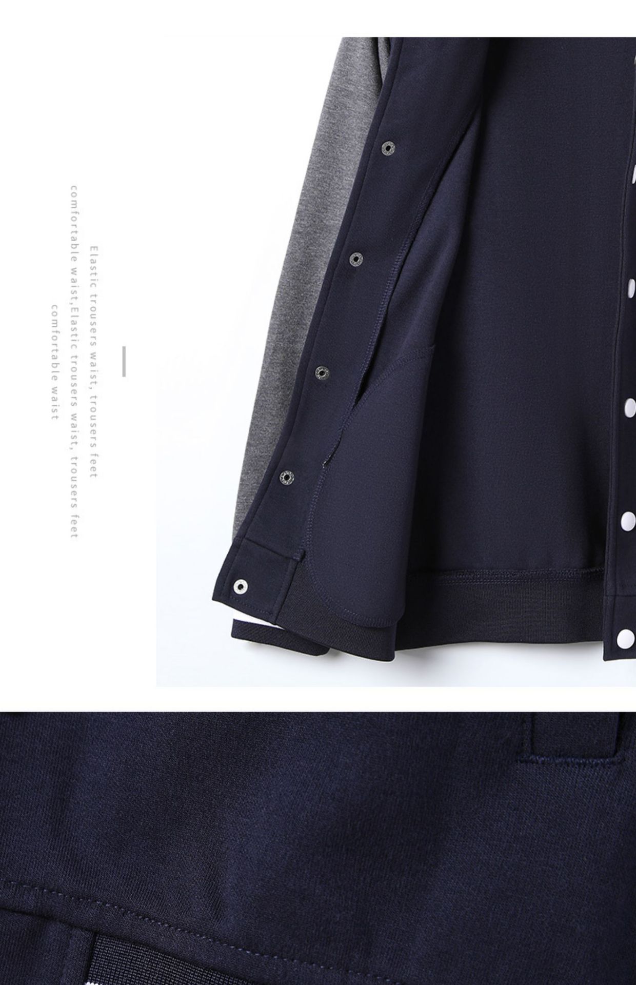 • 네이비 블루 재킷 + 다크 그레이 엘라스틱 팬츠