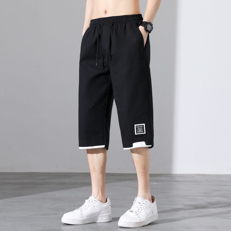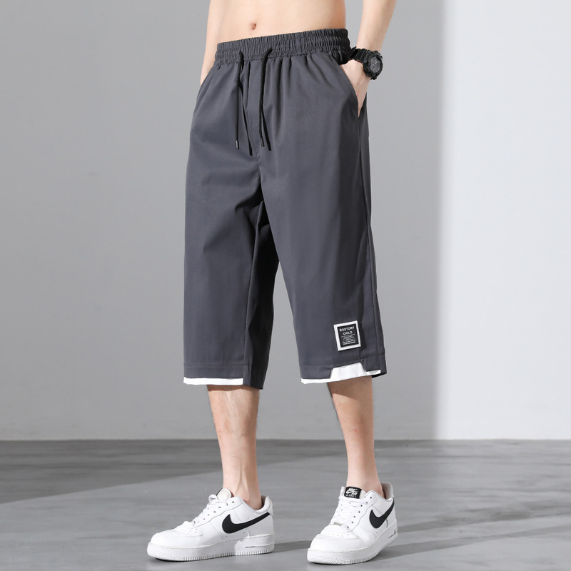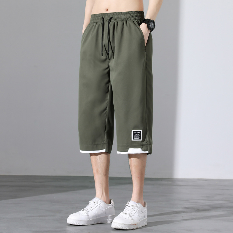 자른 바지 남자 여름 얇은 느슨한 플러스 사이즈 플러스 사이즈 가짜 투피스 스포츠 아이스 실크 캐주얼 남자 반바지스토어 가기