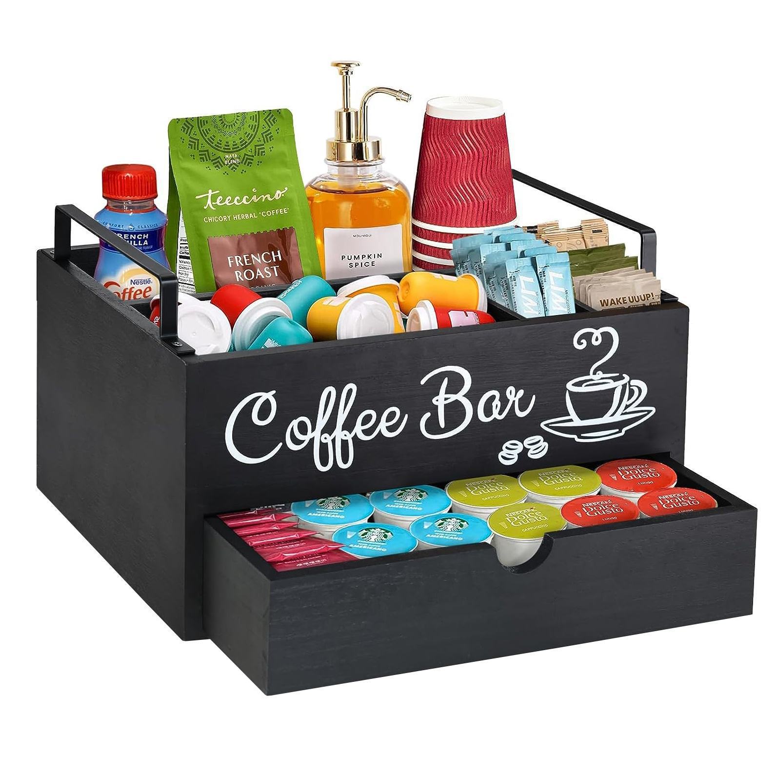 나무 가정용 주방 조미료 보관 상자 커피 바 카운터 테이블 탑 배열 상자 커피 캡슐 보관 선반