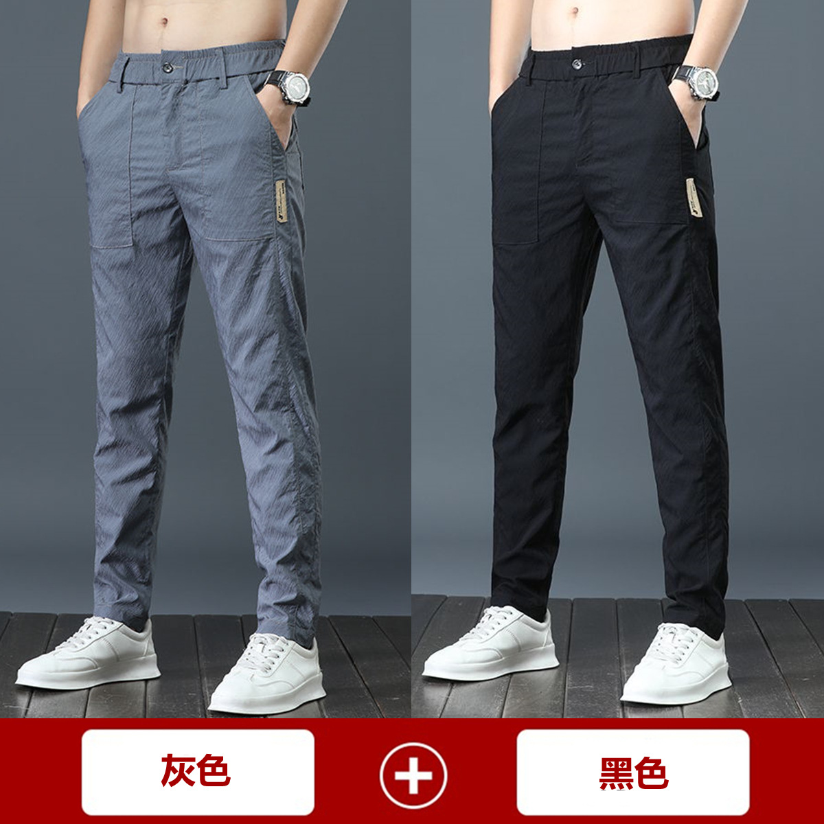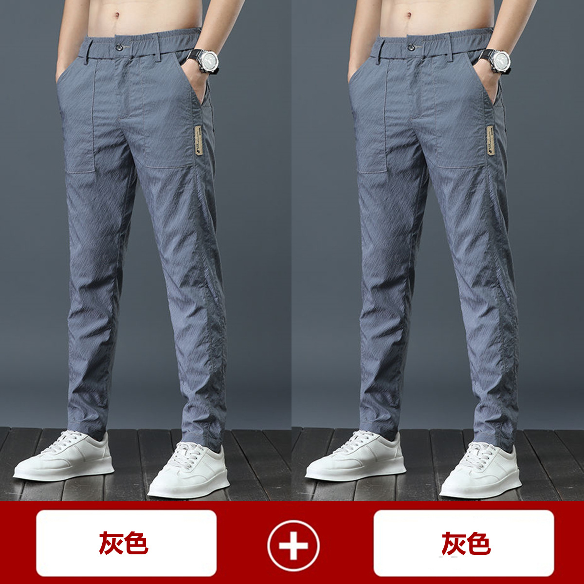 남자 아이스 실크 초박형 캐주얼 바지 한국식 트렌디 올매치 느슨한 여름 얇은 빠른 건조 캐주얼 긴 바지스토어 가기