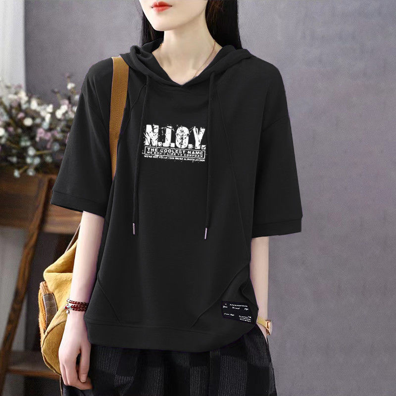 100% 면 새로운 여름 뚱뚱한 소녀 후드 반팔 셔츠 여성의 플러스 사이즈 느슨한 예술적 캐주얼 지방 탑스토어 가기