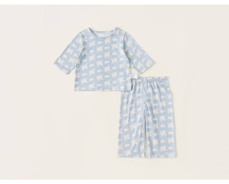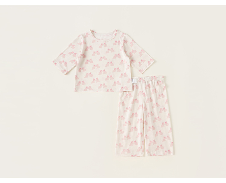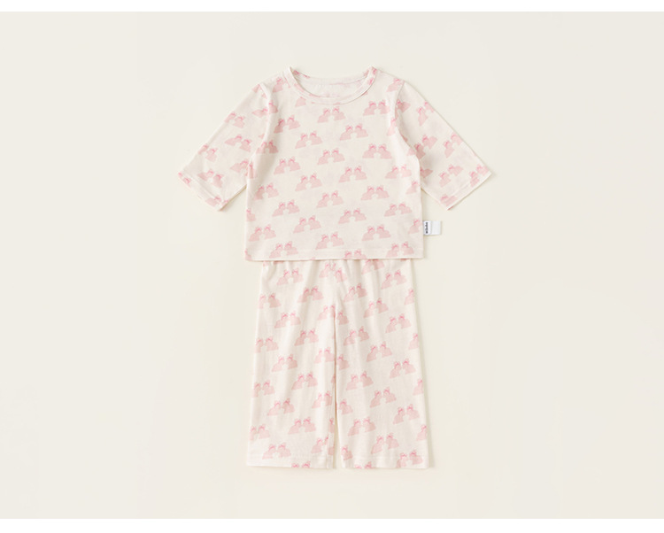 유바오 아동복 여름 얇은 만화 프린트 홈웨어 세트 아기 투피스 세트 여자아이 옷