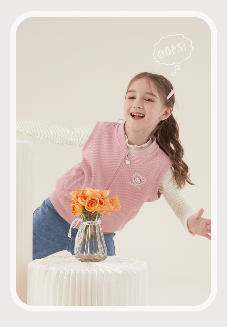 어린이 조끼 봄 가을용 외출복 2025 신상 스타일리시 여아 니트 조끼 중대형 아동용 지퍼 카디건 아동복스토어 가기