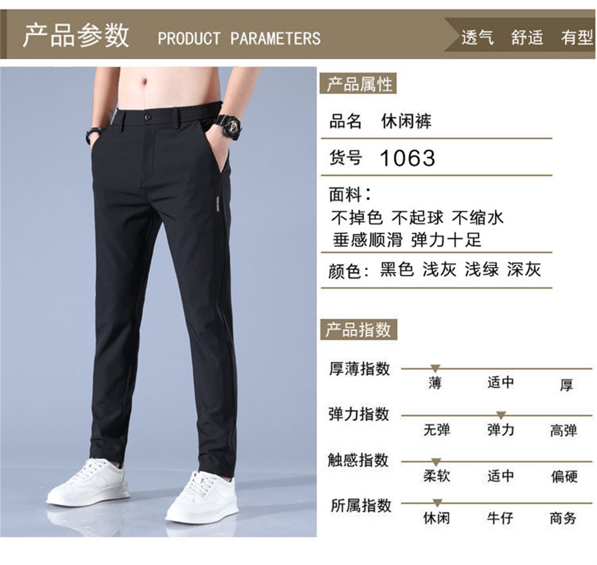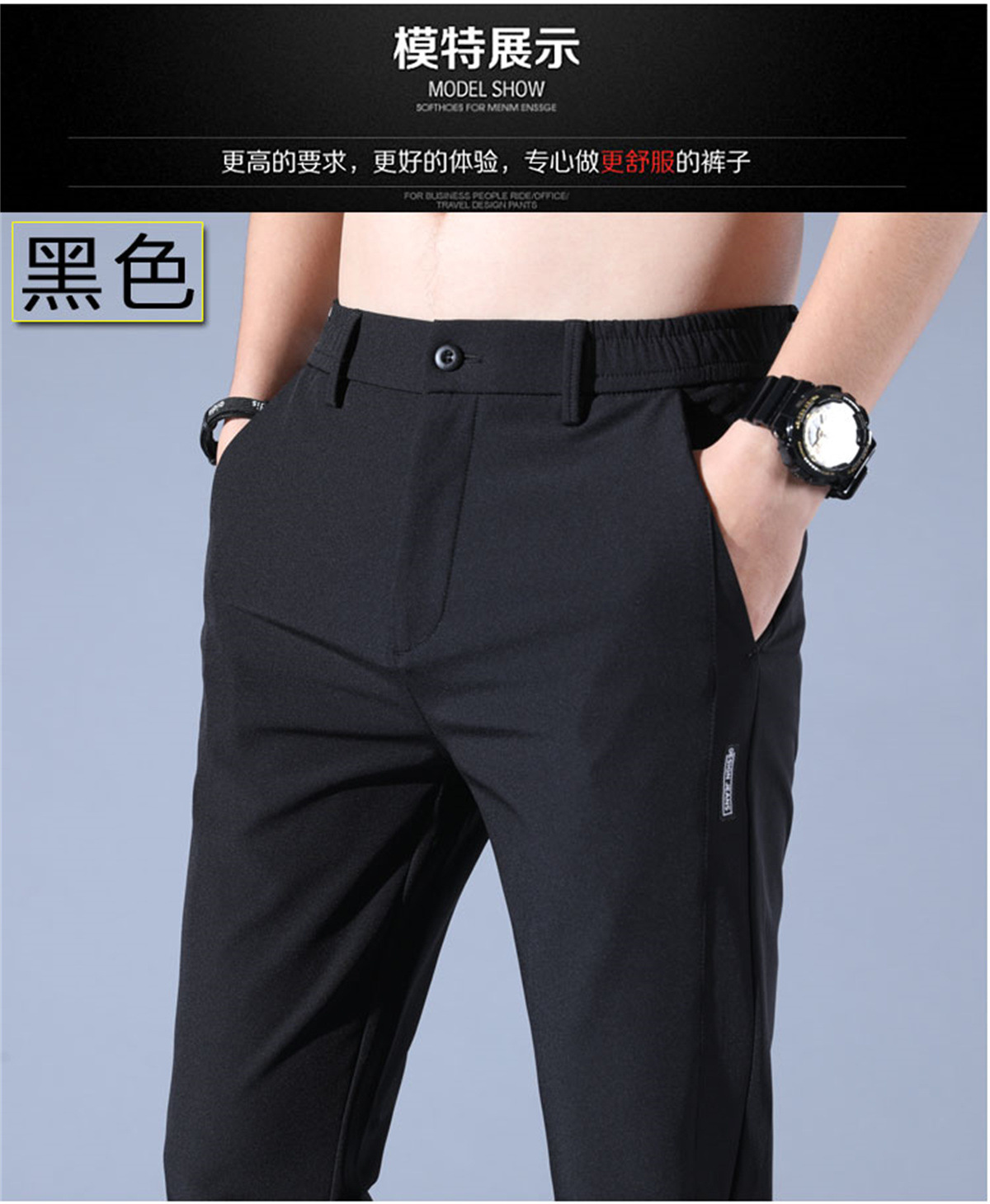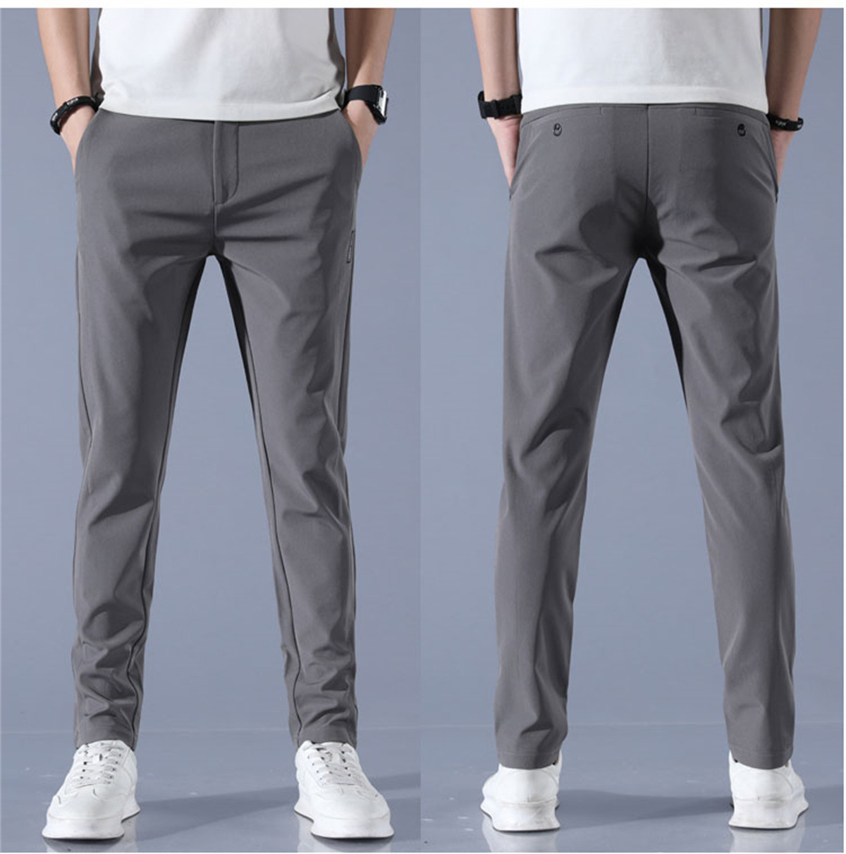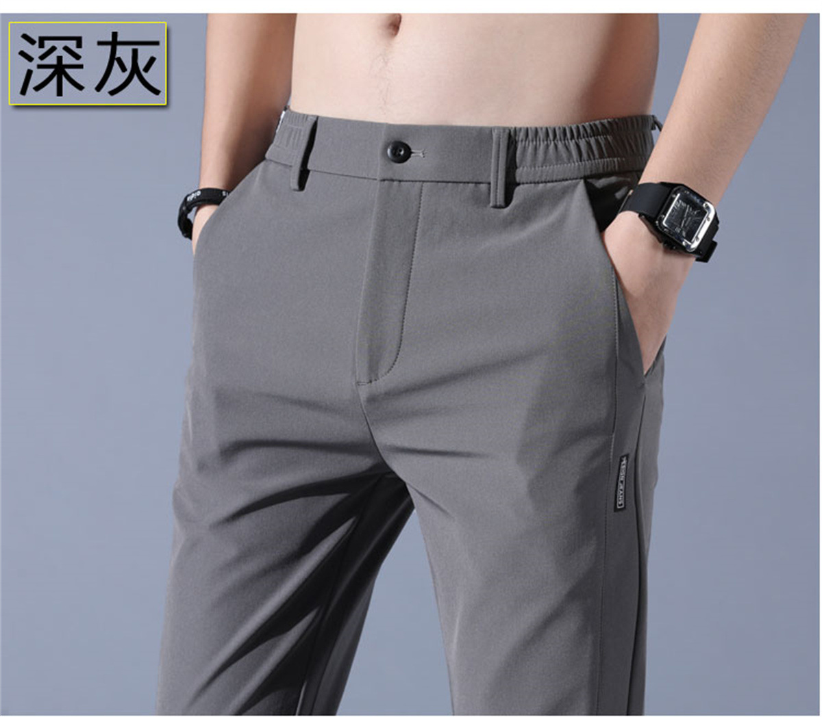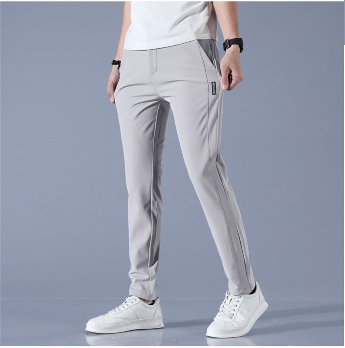 여름 고급 아이스 실크 얇은 남성용 캐주얼 바지 트렌디 슬림 핏 스트레이트 바지 스트레치 루즈 올 매치 남자 바지스토어 가기