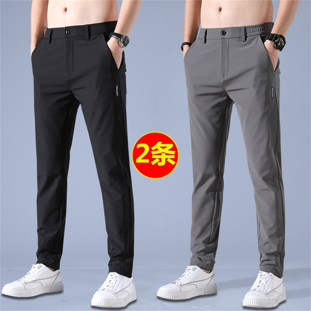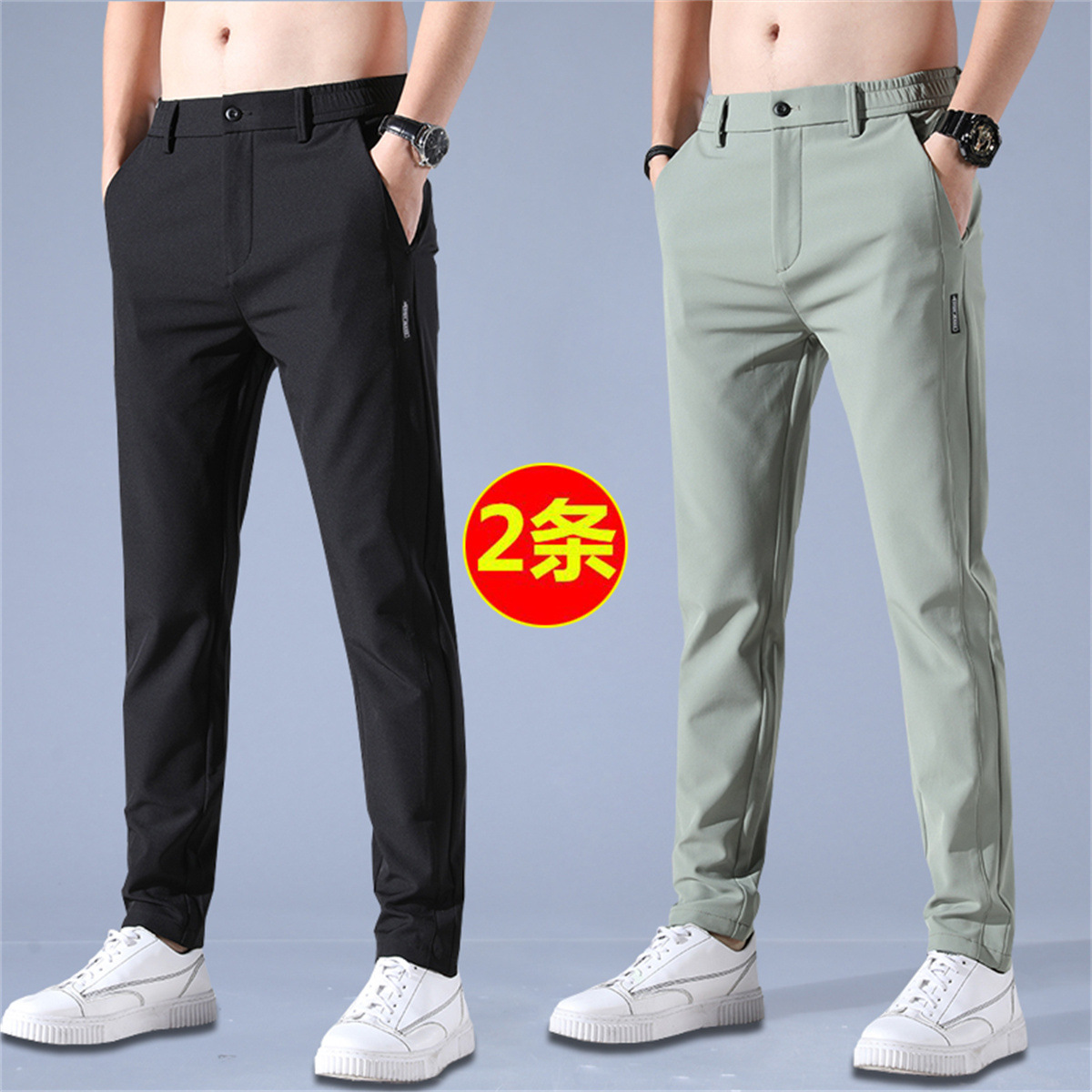 여름 고급 아이스 실크 얇은 남성용 캐주얼 바지 트렌디 슬림 핏 스트레이트 바지 스트레치 루즈 올 매치 남자 바지