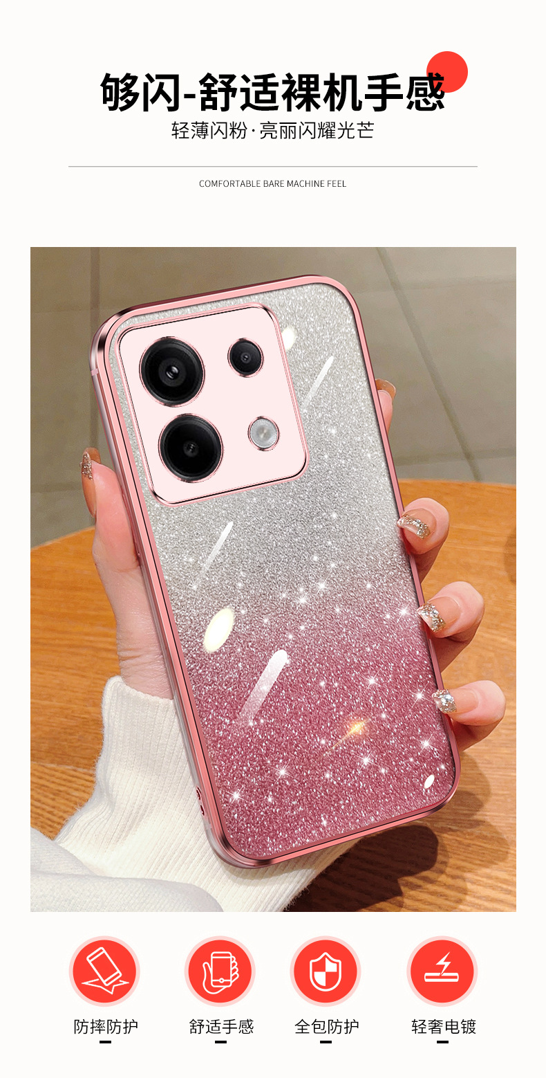 适用适用Poco X6pro手机壳渐变闪粉pocox6保护套透明pcox超薄xiao