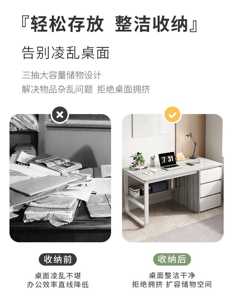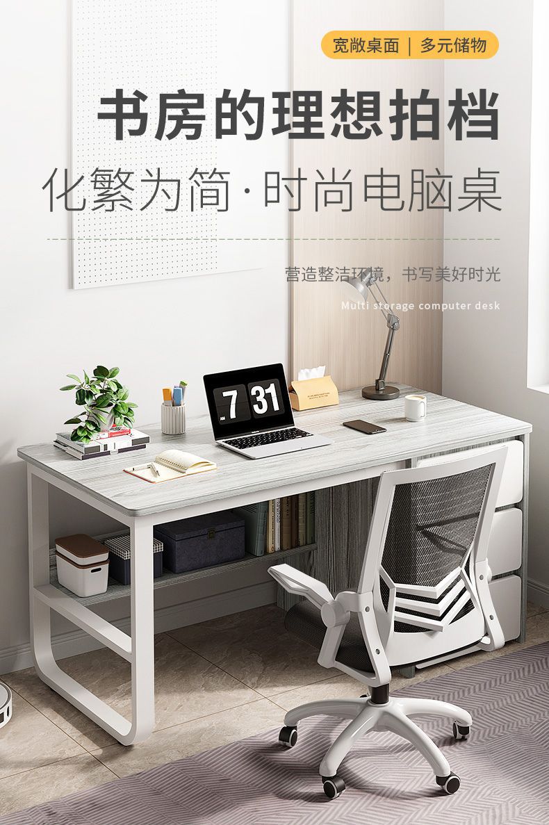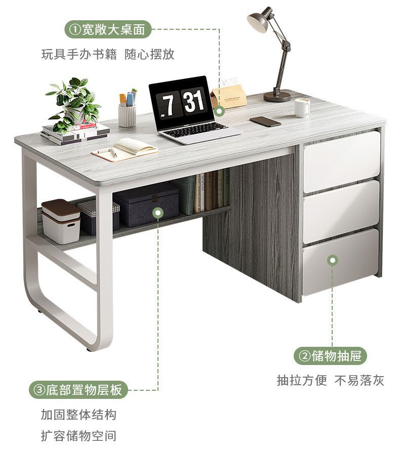 컴퓨터 책상 데스크탑 사무실 책상 서랍 가정용 테이블과 의자 조합 침실 학생 연구 테이블이있는 현대적인 간단한 책상스토어 가기