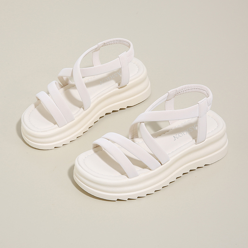 두꺼운 밑창 로마 샌들 여성 아우터웨어 2024 여름 새로운 한국식 크로스 스트랩 비치 슈즈 패션 페어리 스타일 샌들스토어 가기