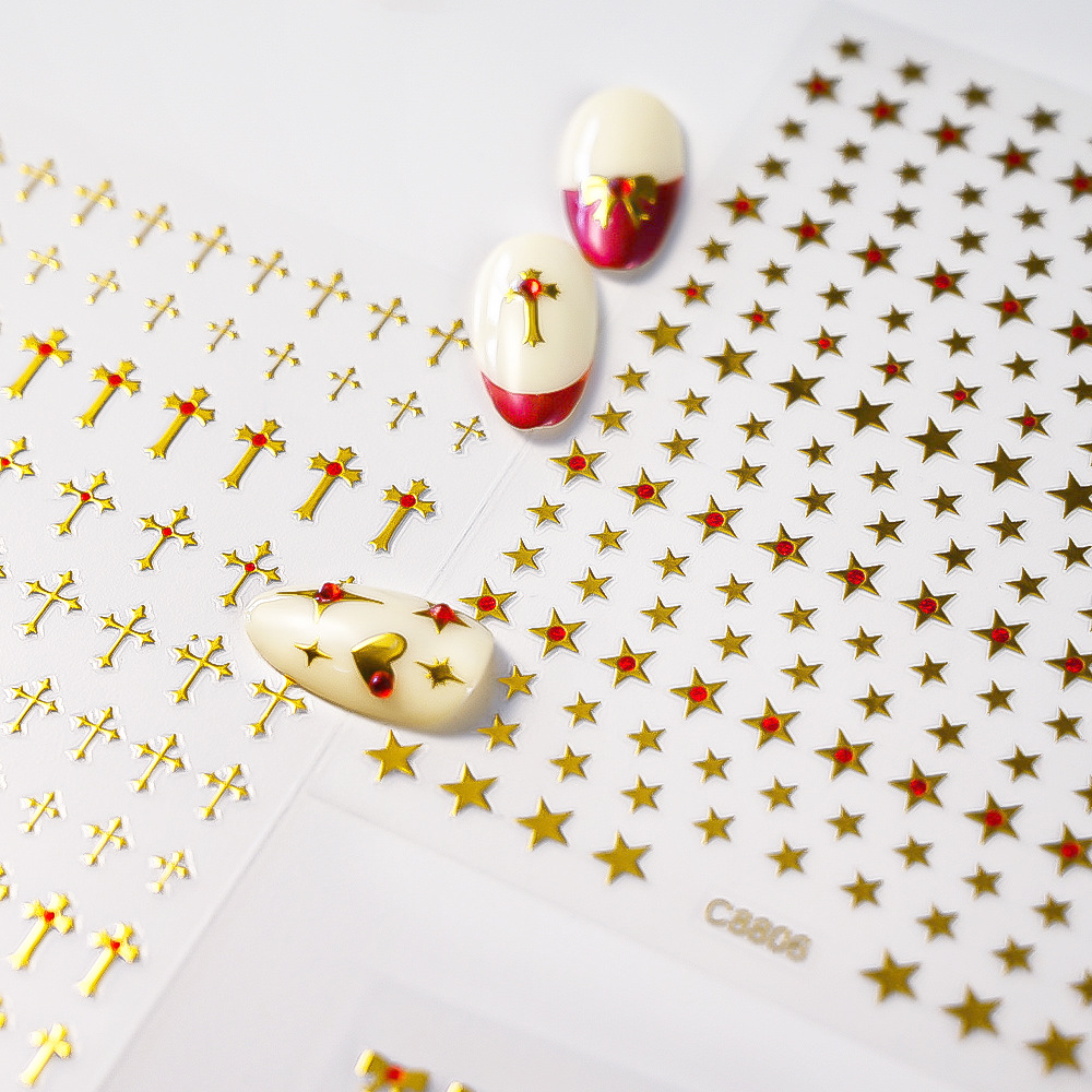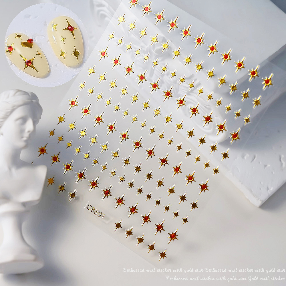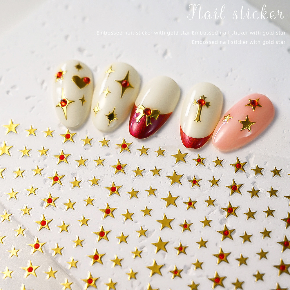 브론징 다섯개 별 사랑 네일 아트 스티커 모방 루비 골드 4 개 별 접착 성 네일 장식 스티커스토어 가기