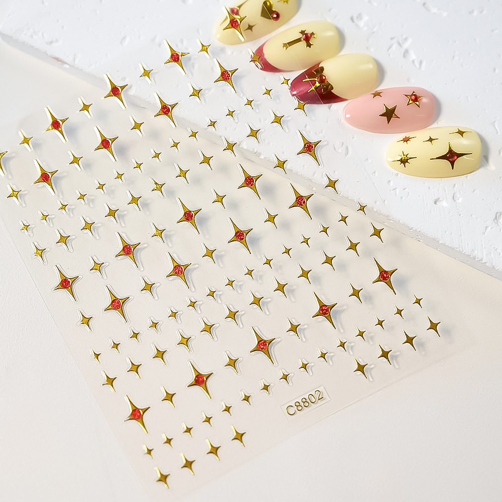 브론징 다섯개 별 사랑 네일 아트 스티커 모방 루비 골드 4 개 별 접착 성 네일 장식 스티커