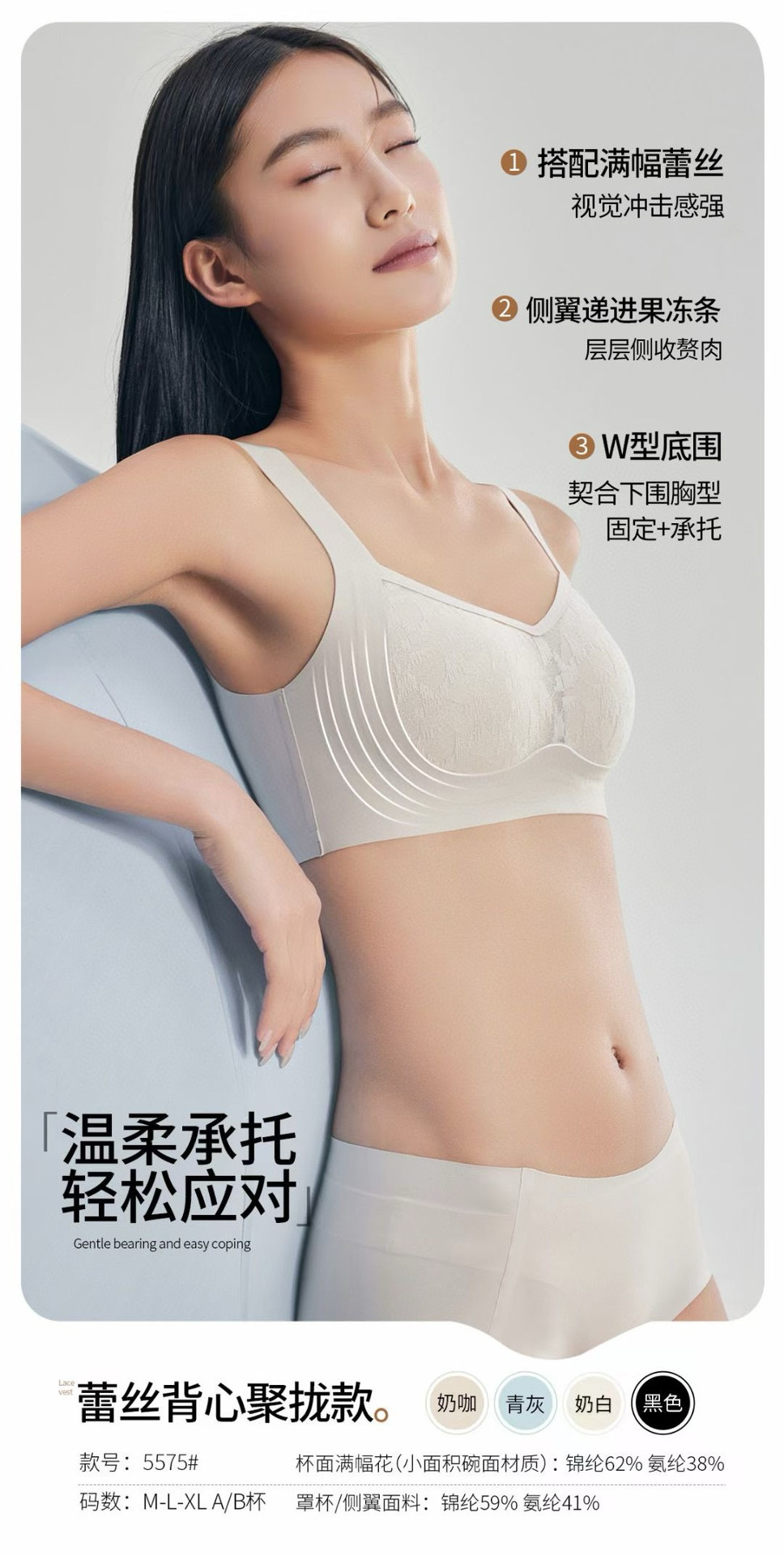 패션 새로운 하이 엔드 센스 레이스 조끼 원피스 비 마킹 Rimless Bra 편안한 헤어질 여성용 속옷 5575스토어 가기