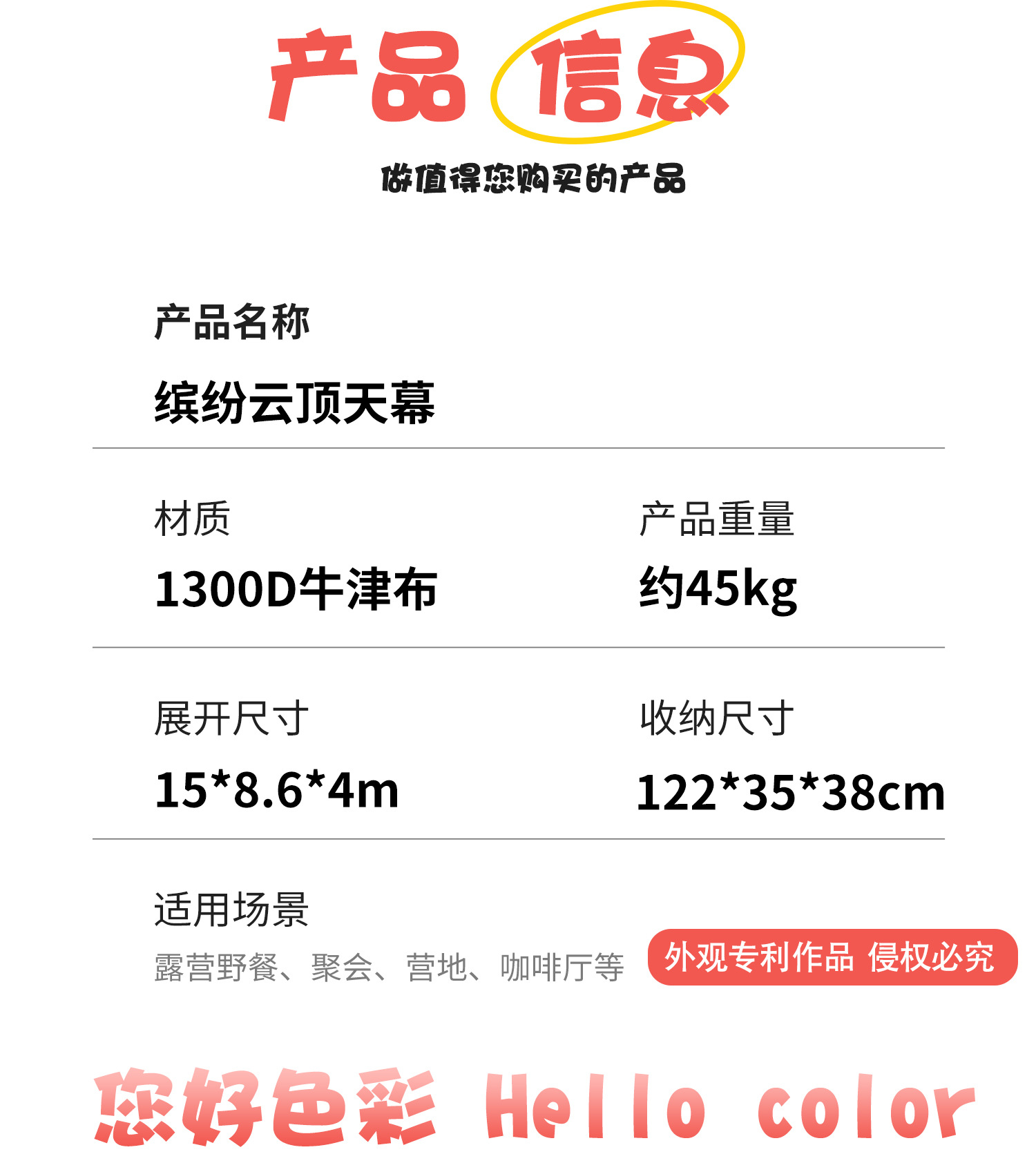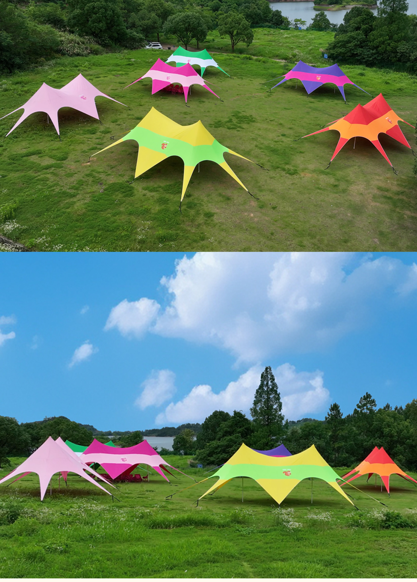컬러 야외 단일 피크 캐노피 화려한 시리즈 젠팅 문어 캠핑 캠프 텐트 노란색 녹색