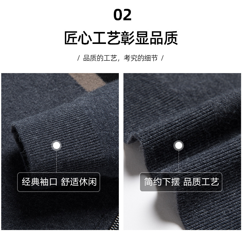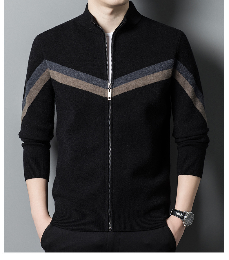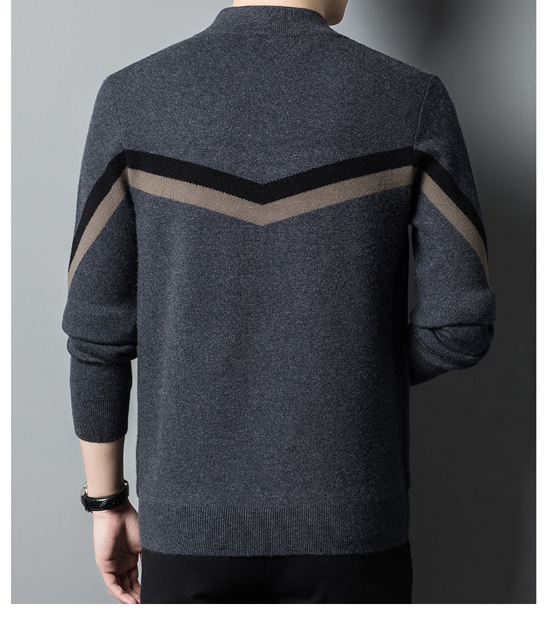 젊은 남성 하이 엔드 봄과 가을 새로운 스타일 수직 칼라 스트라이프 컬러 매칭 지퍼 캐주얼 루즈 심플 니트 긴팔 유행