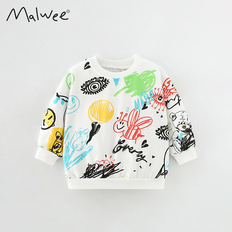 말위 소년 스웨터 가을 새로운 유럽과 미국 어린이 캐주얼 라운드 넥 셔츠 잘 생긴 프린트 아동용 탑스토어 가기