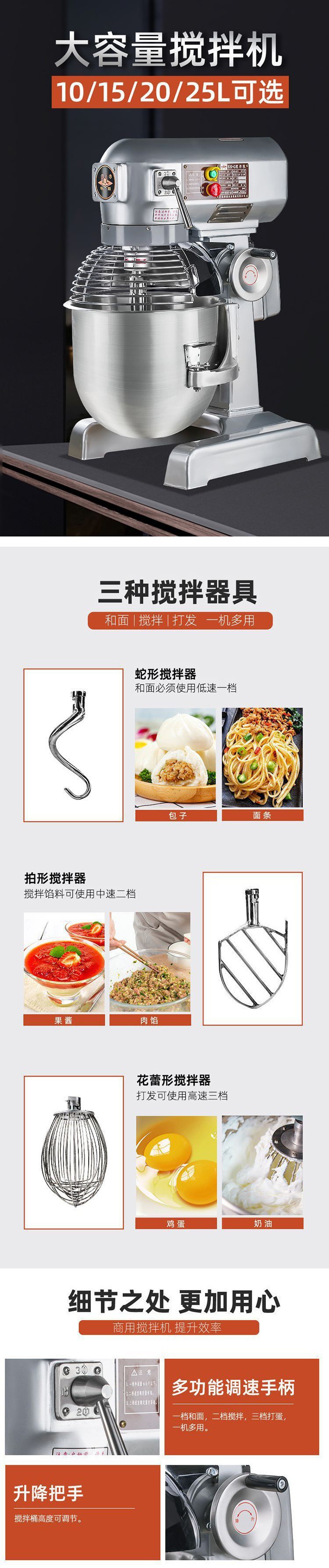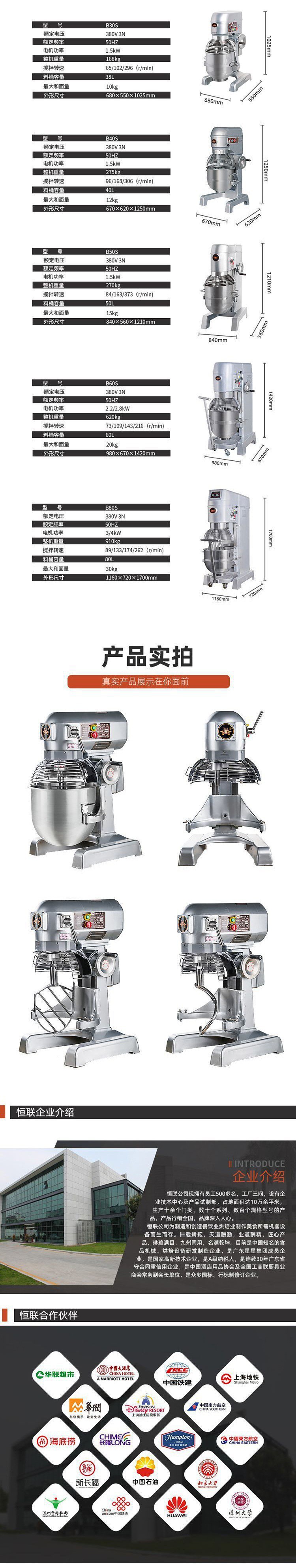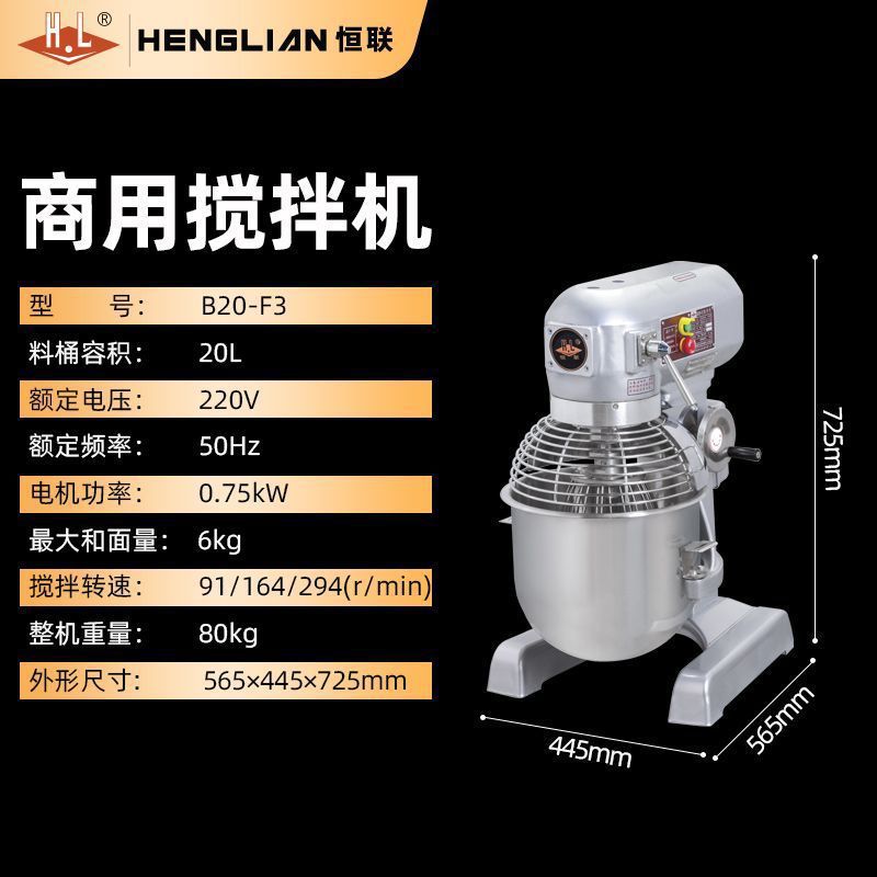 Henglian b30 믹서 상업용 다기능 식품 스터핑 기계 계란 비터 및 국수 기계 대용량 식품 무료 배송