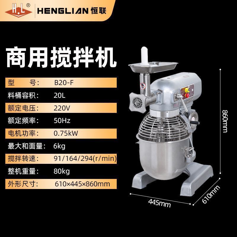 Henglian b30 믹서 상업용 다기능 식품 스터핑 기계 계란 비터 및 국수 기계 대용량 식품 무료 배송스토어 가기