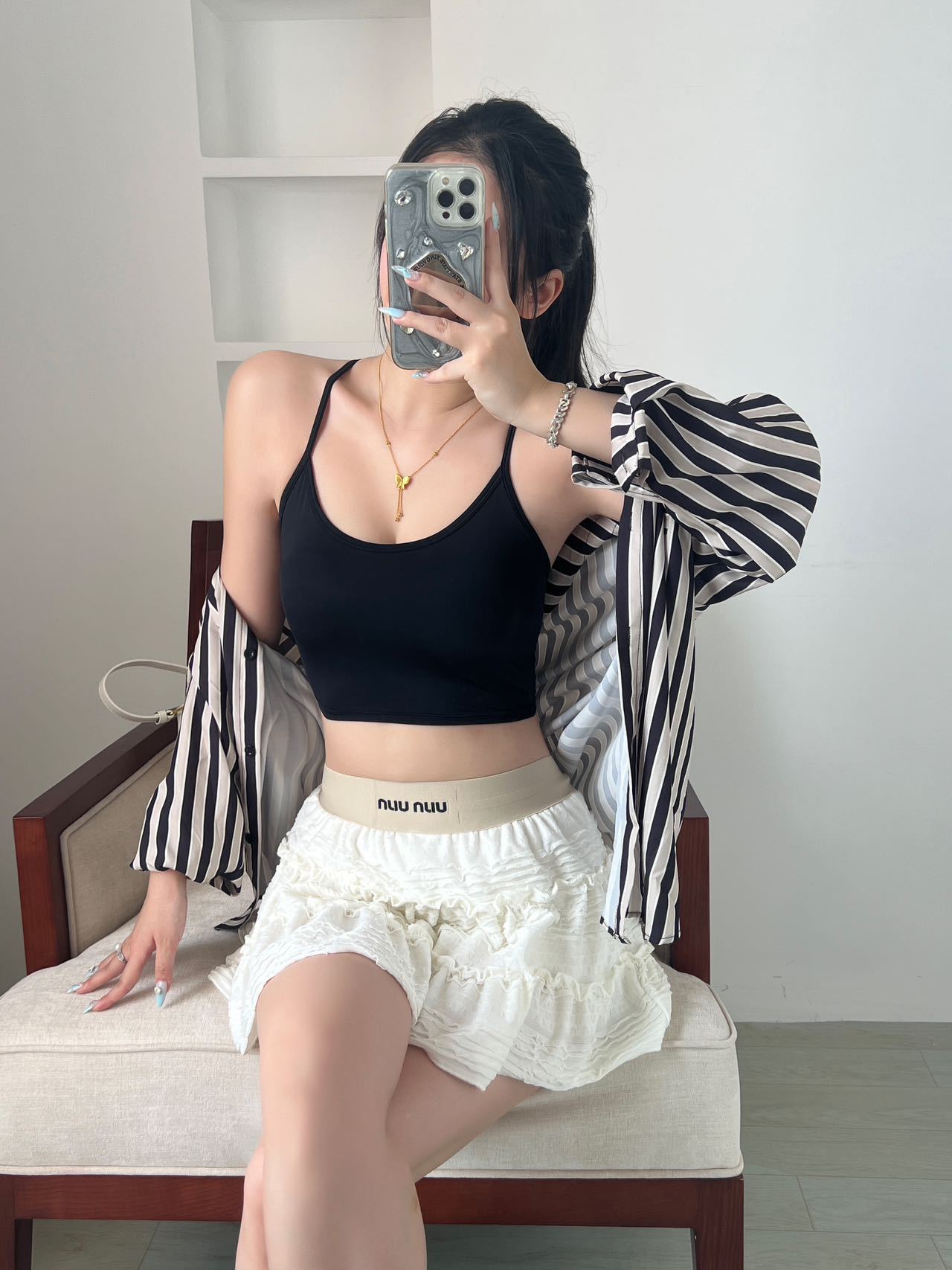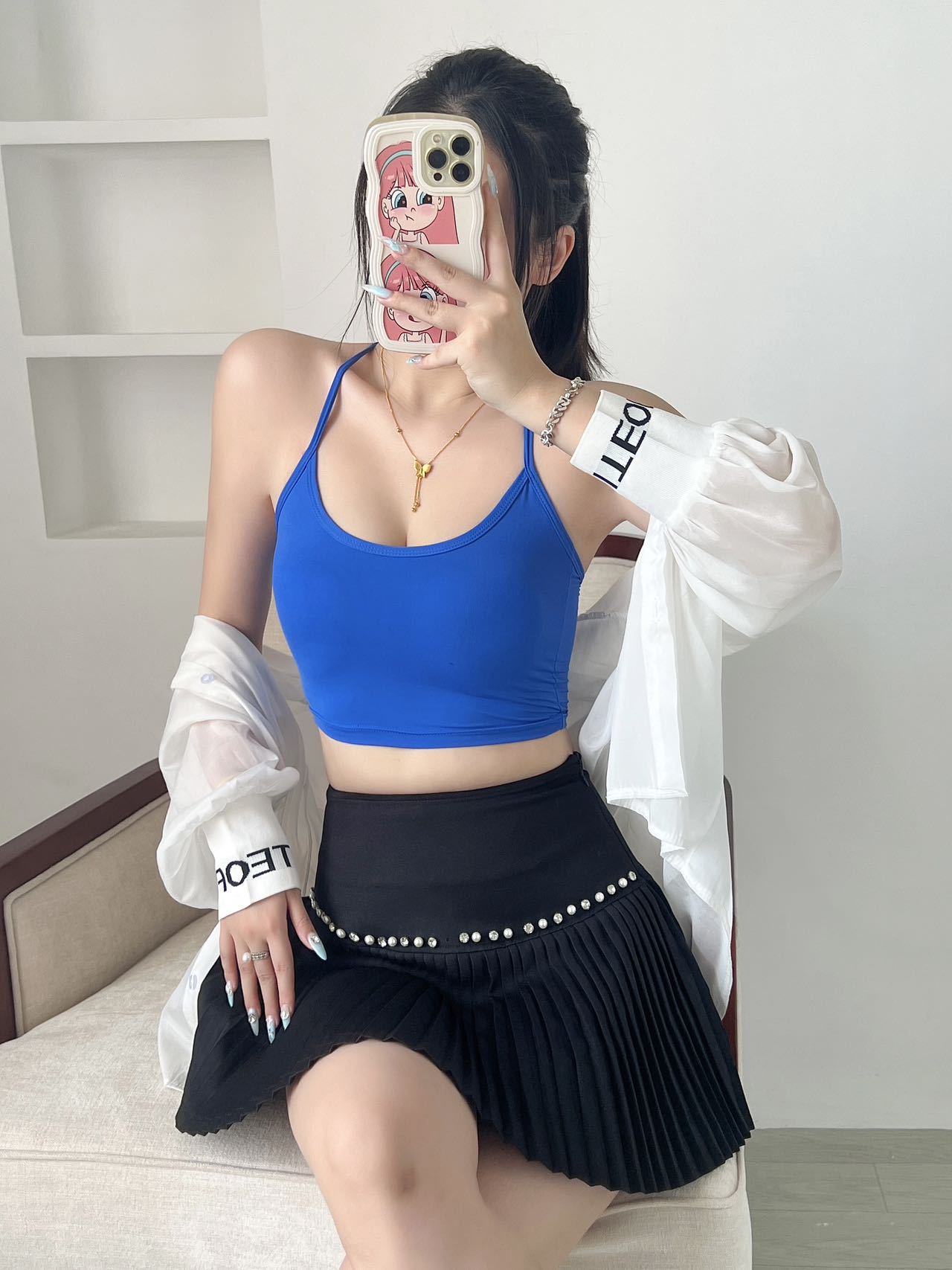 H332 # 달콤한 쿨 스파이스 소녀 바람 교차 아름다운 뒤 여성의 여름 외부 착용 내부 콘돌 벨트, 가슴 패드 작은 재킷