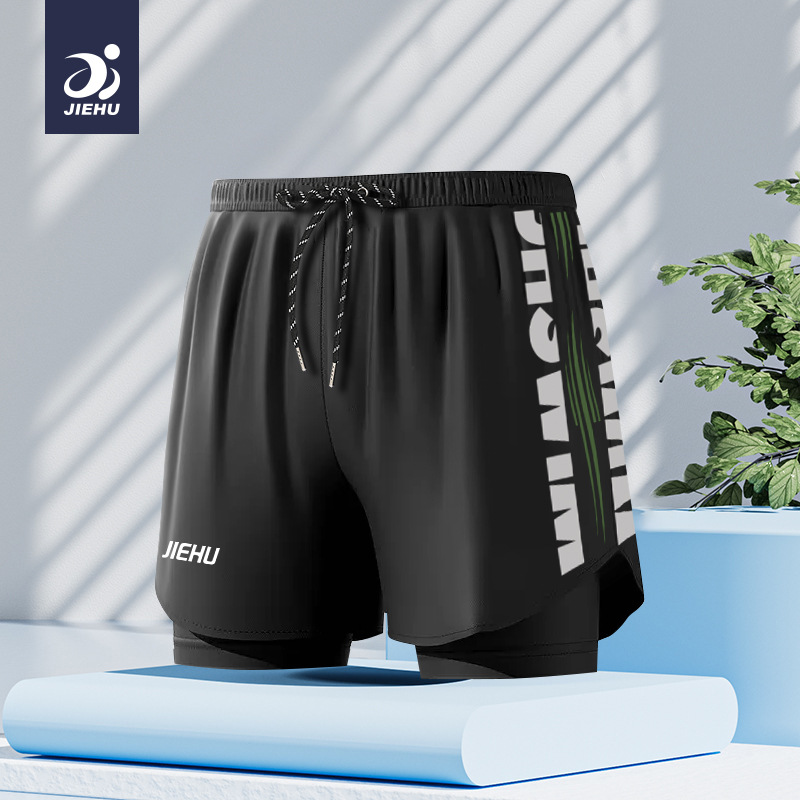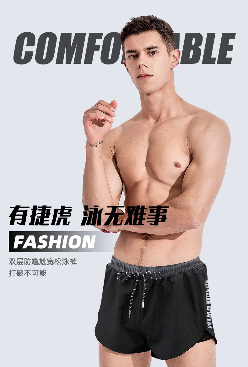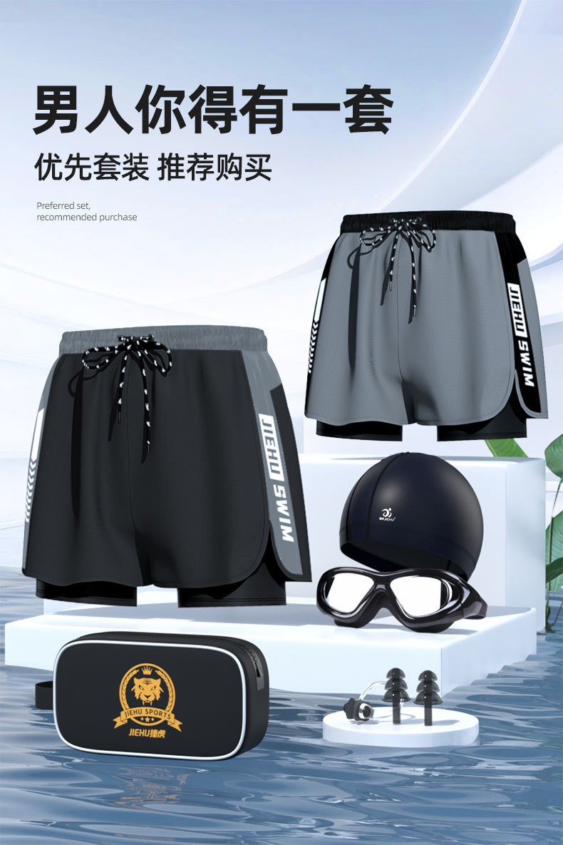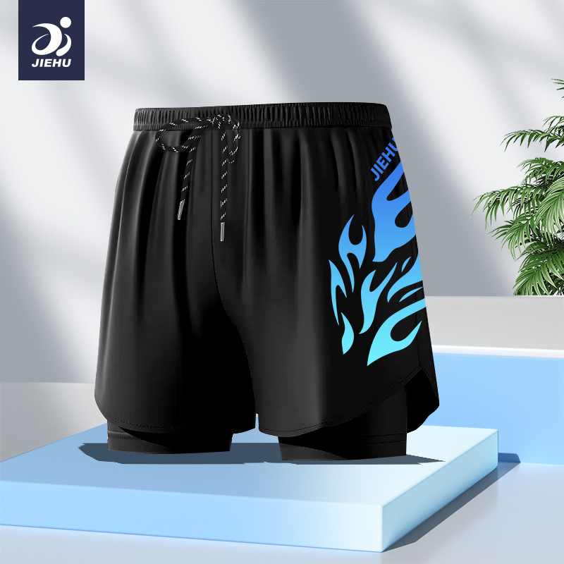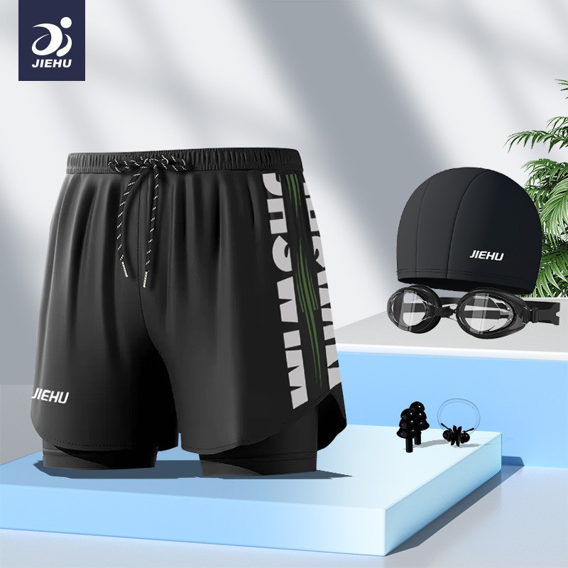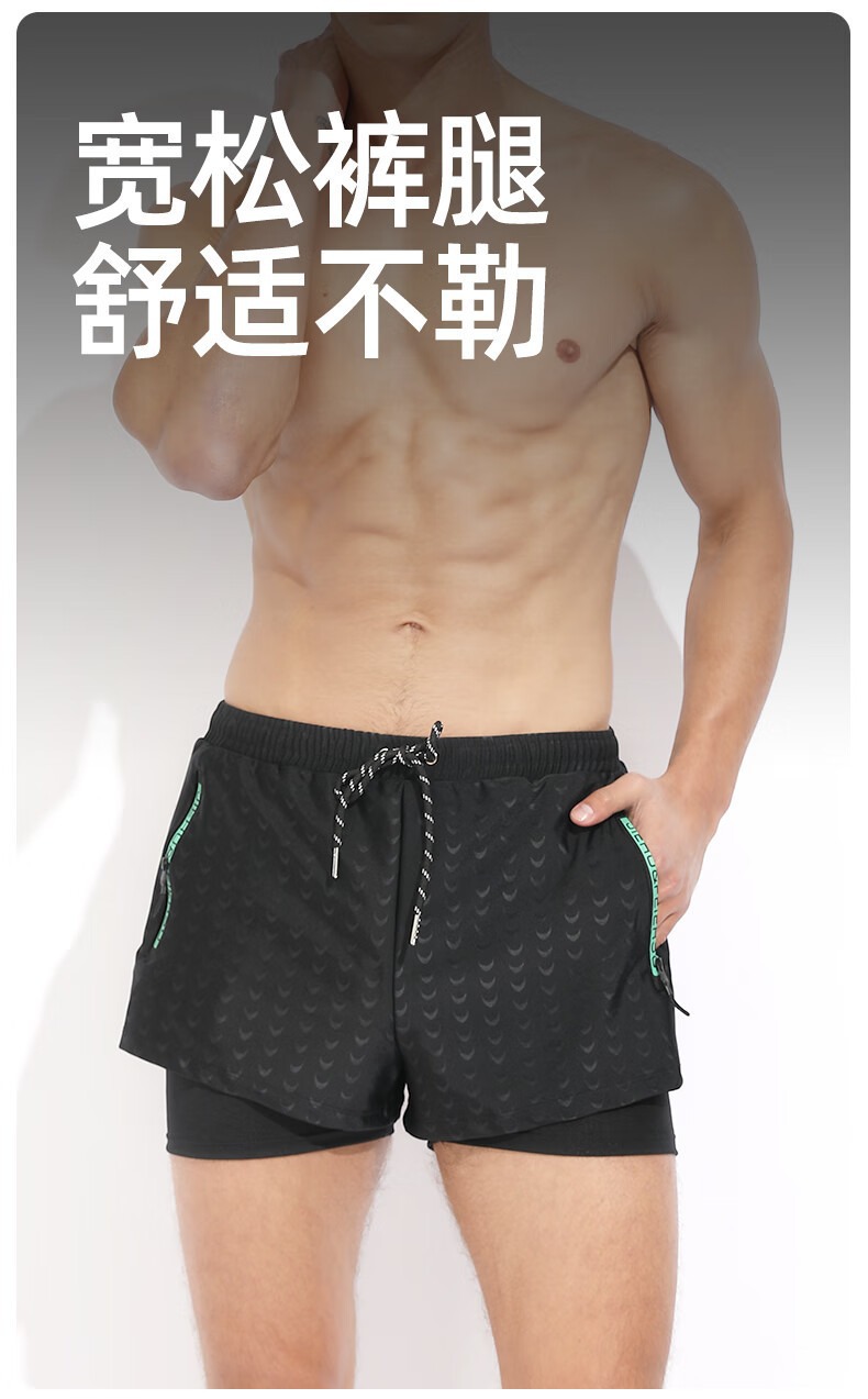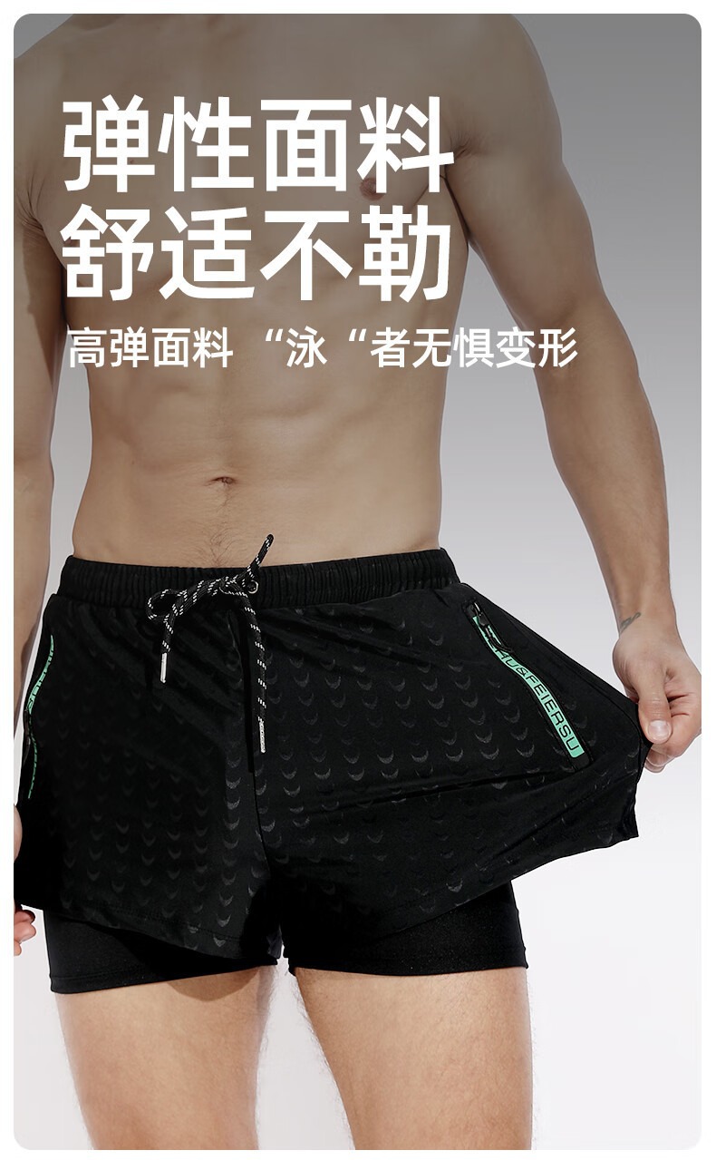 수영복 남성용 수영복 속건성 더블 레이어 수영복 당황 방지 수영복 남성용 6피스 복서 수영복 비치 바지스토어 가기