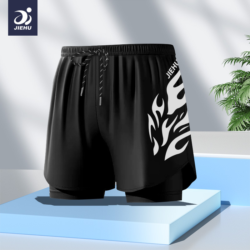 수영복 남성용 수영복 속건성 더블 레이어 수영복 당황 방지 수영복 남성용 6피스 복서 수영복 비치 바지