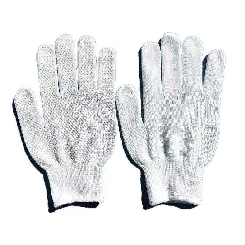 포인트 비드 장갑 나일론 원사 접착제 도매 포인트 플라스틱 분배 장갑 미끄럼 방지 노동 장갑 작동