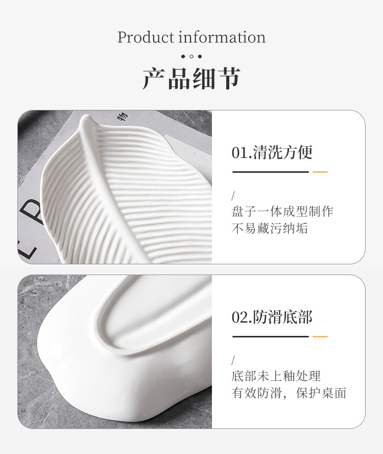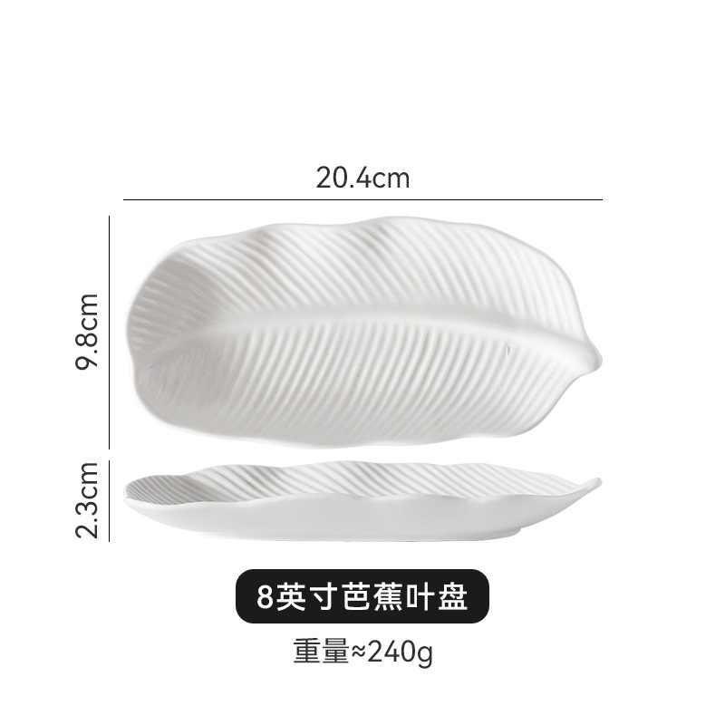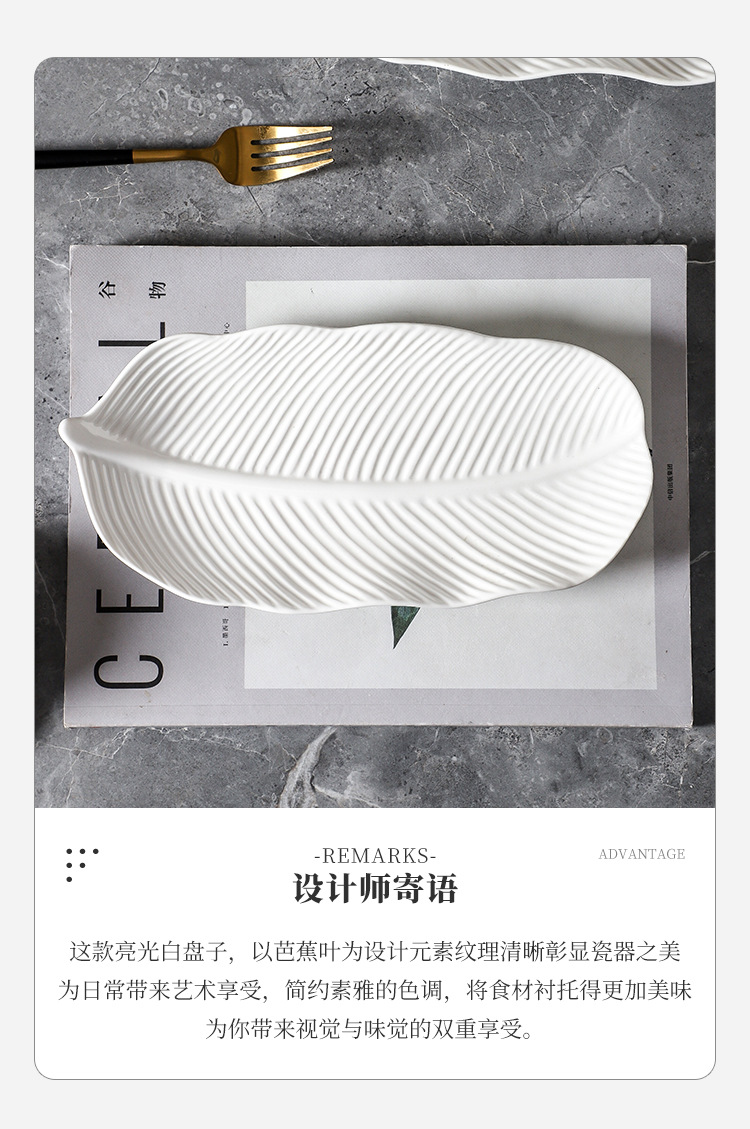 세라믹 크리 에이 티브 바나나 잎 스낵 접시 일본 스시 접시 간단한 순수한 흰색 가정용 과일 스낵 접시 호텔 식기스토어 가기