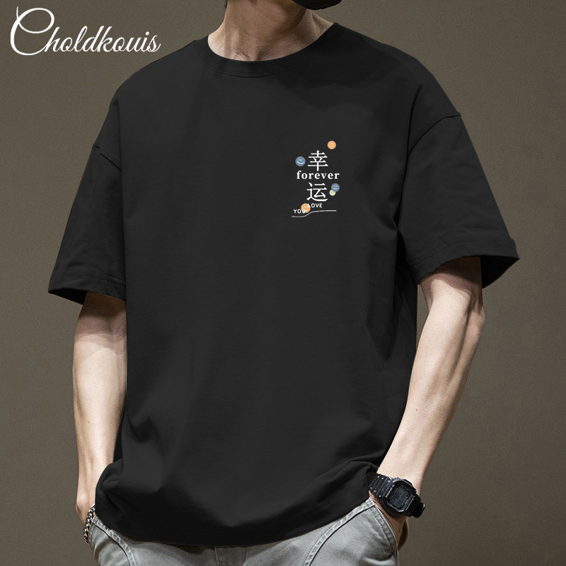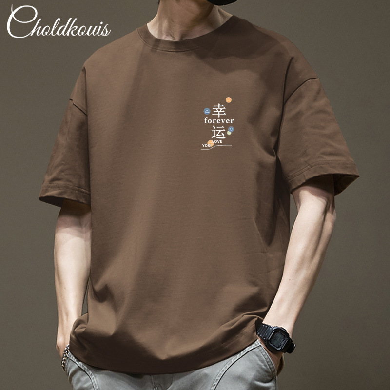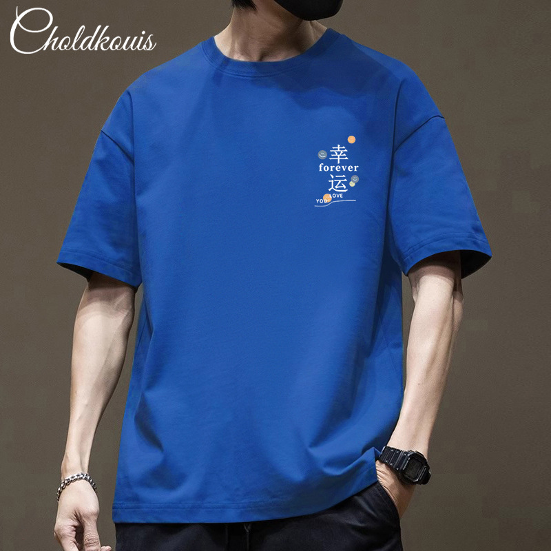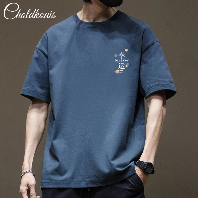 반팔 남성 여름 티셔츠 2024 새로운 패션 브랜드 패셔너블 루즈 탑 옷 라운드 넥 티셔츠