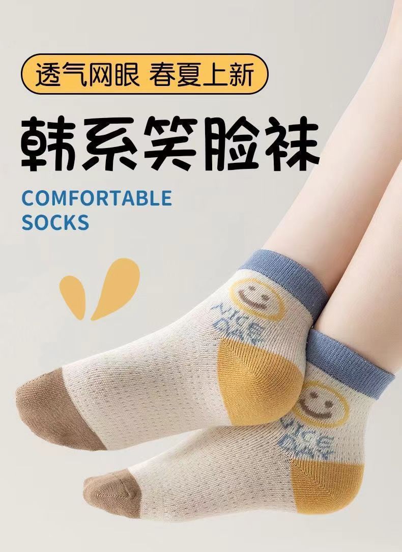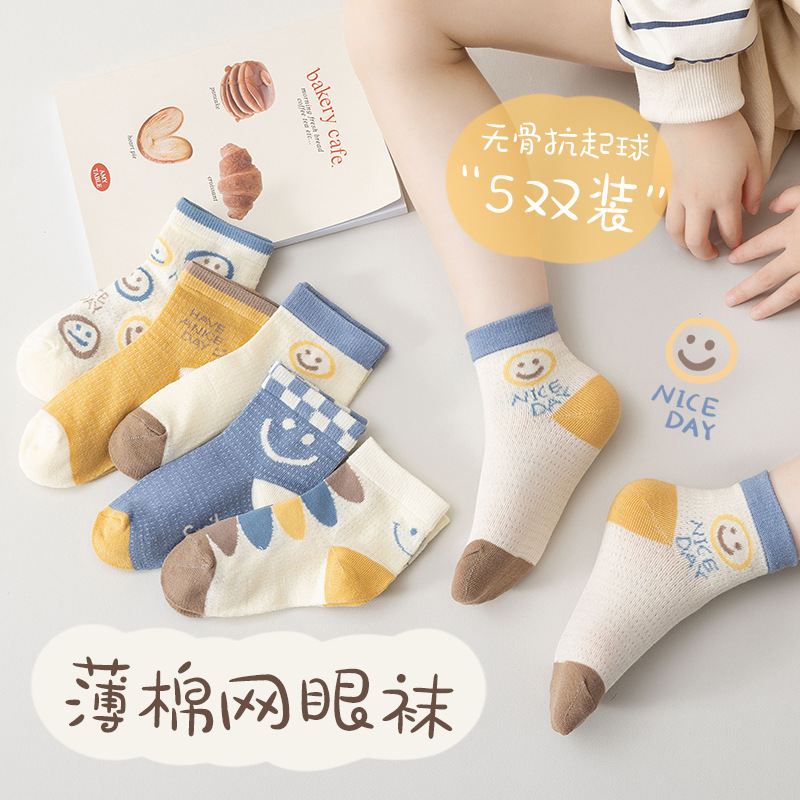 순수한면 어린이 양말 봄과 여름 얇은 소년 소녀 아기 통기성 어린이 미끄럼 방지 아이스 실크 보트 양말 메쉬 양말