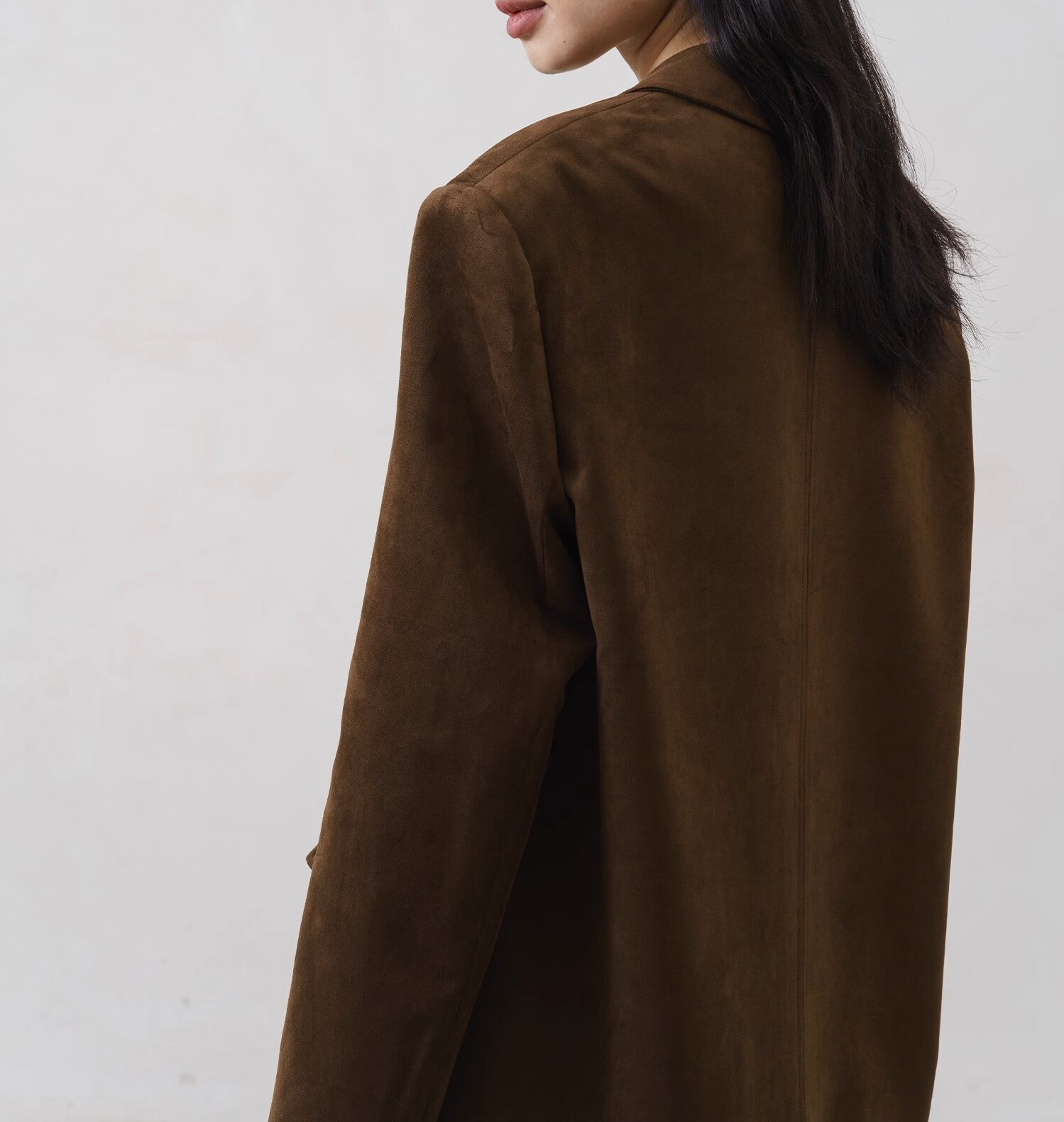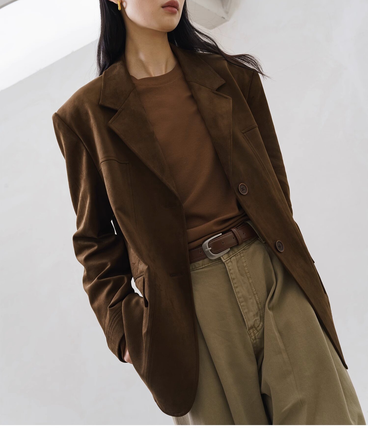 새로운 다크 브라운 스웨이드 정장 재킷 아메리칸 레트로 캐주얼 정장 가을 겨울 재고 있음