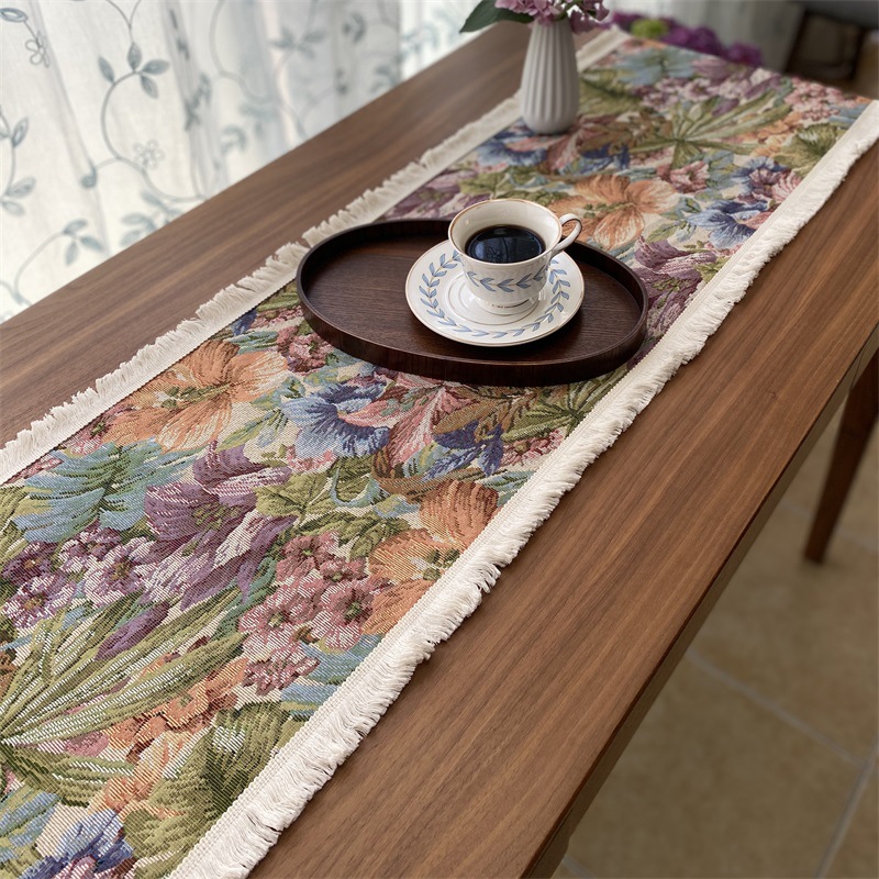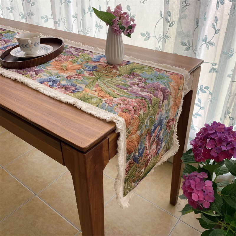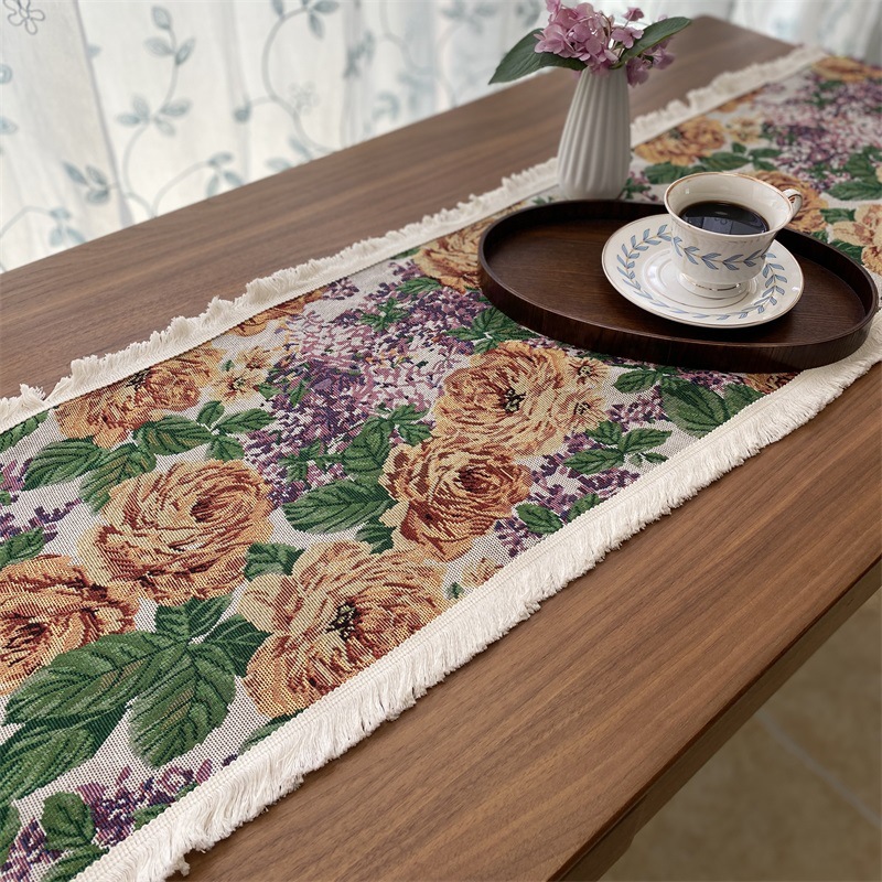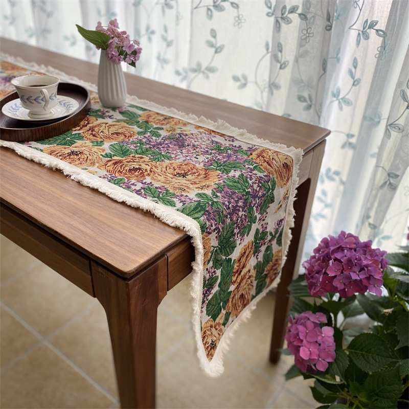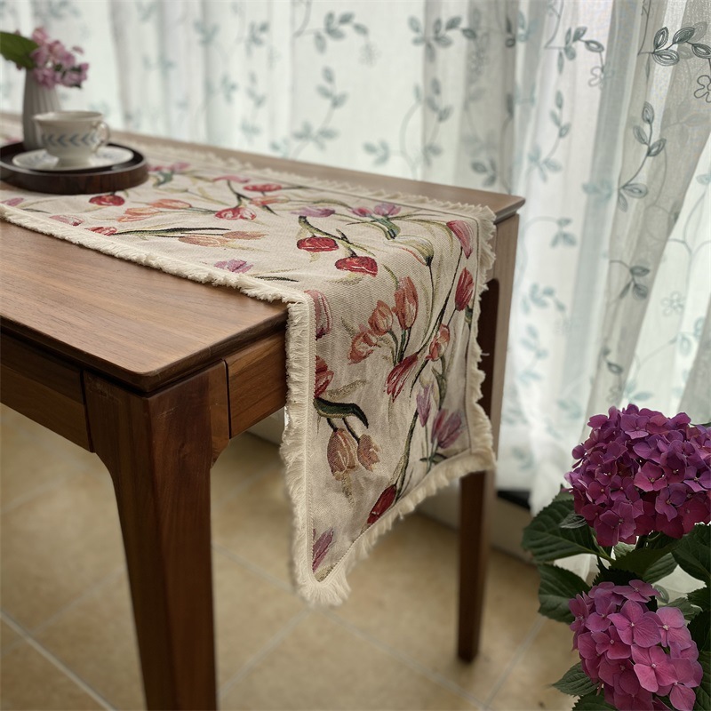 미국 컨트리 꽃과 새 테이블 러너면 및 린넨 커피 테이블 다이닝 테이블 데스크 긴 하이 엔드 파티 장식 데스크탑 장식 천스토어 가기