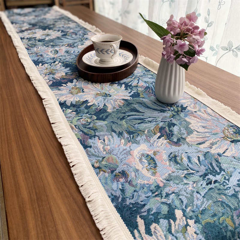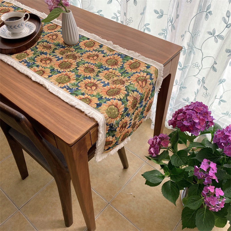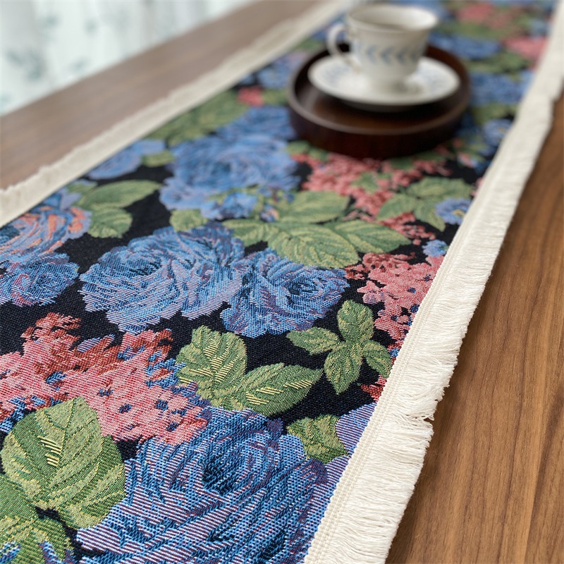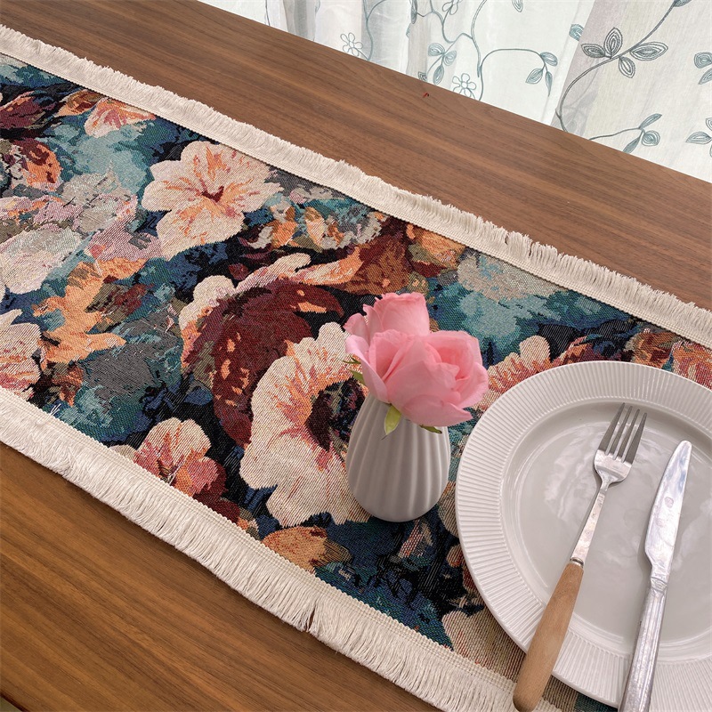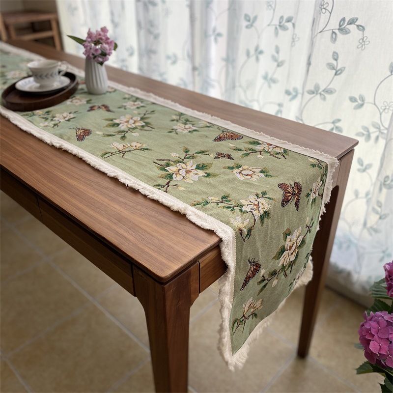 미국 컨트리 꽃과 새 테이블 러너면 및 린넨 커피 테이블 다이닝 테이블 데스크 긴 하이 엔드 파티 장식 데스크탑 장식 천스토어 가기