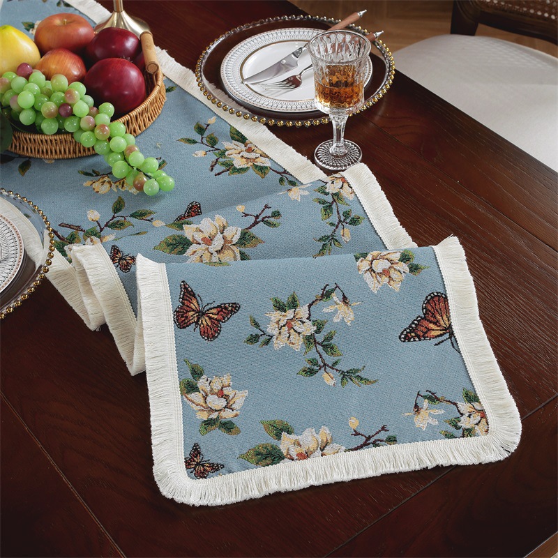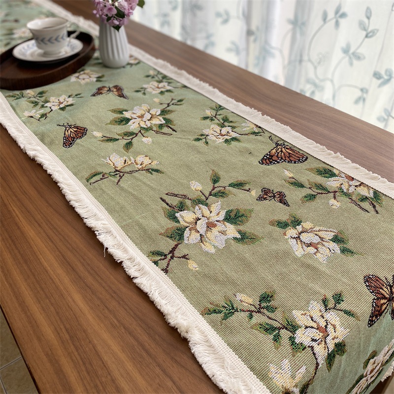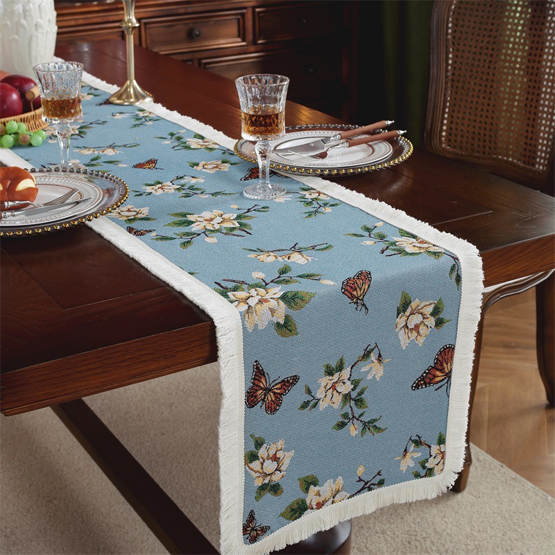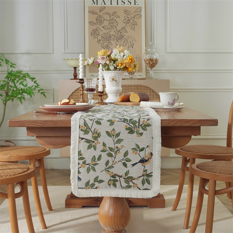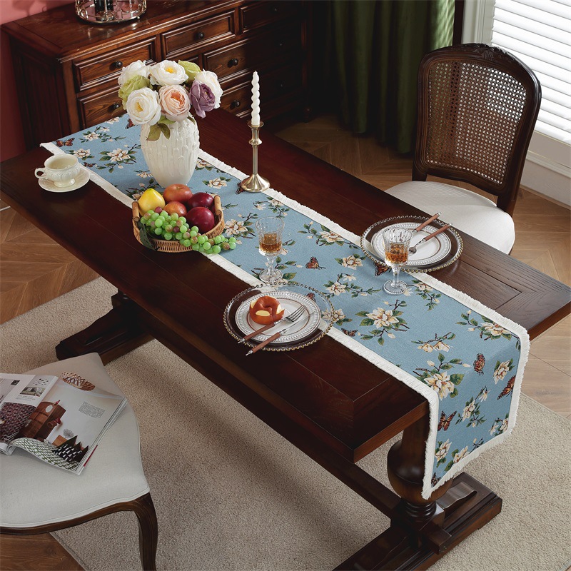 미국 컨트리 꽃과 새 테이블 러너면 및 린넨 커피 테이블 다이닝 테이블 데스크 긴 하이 엔드 파티 장식 데스크탑 장식 천