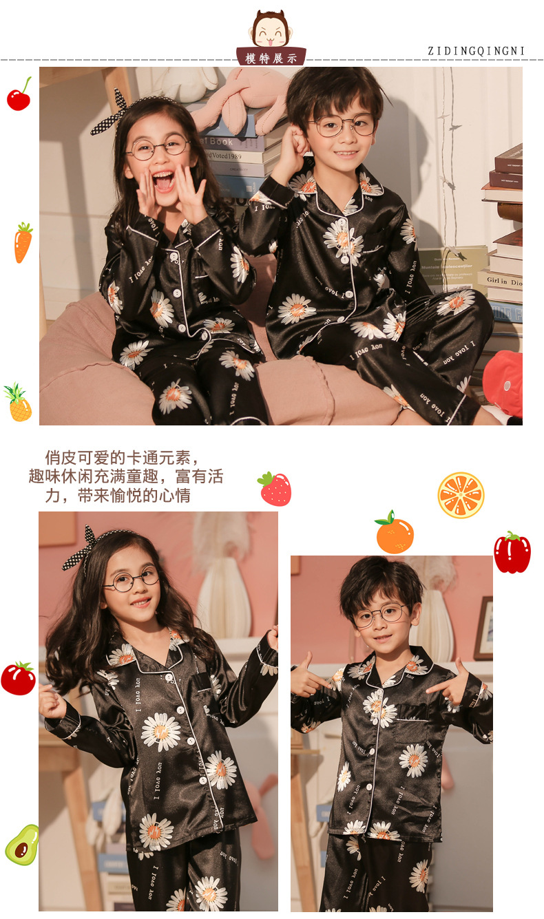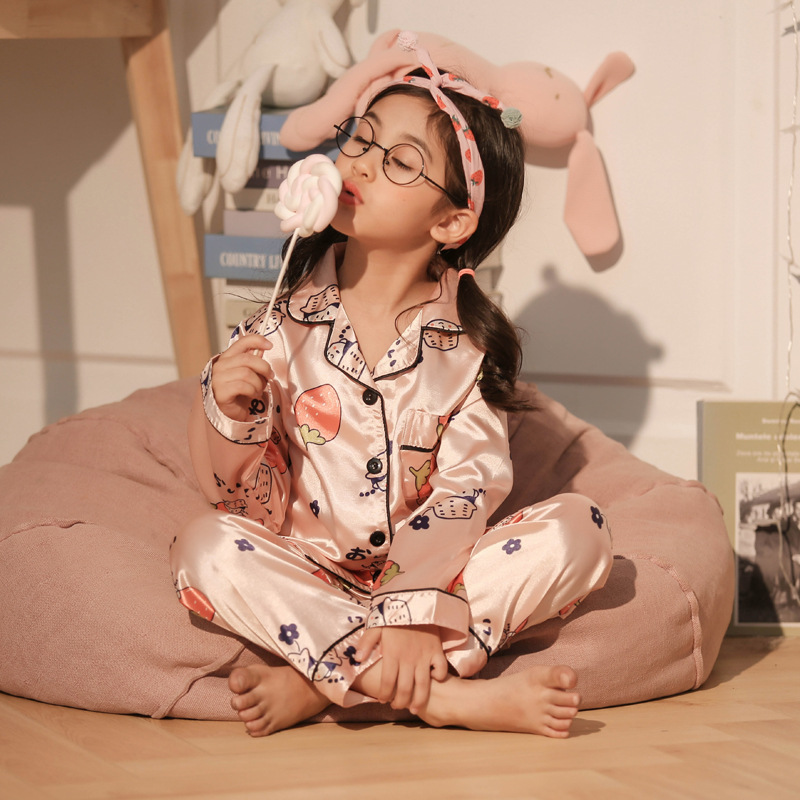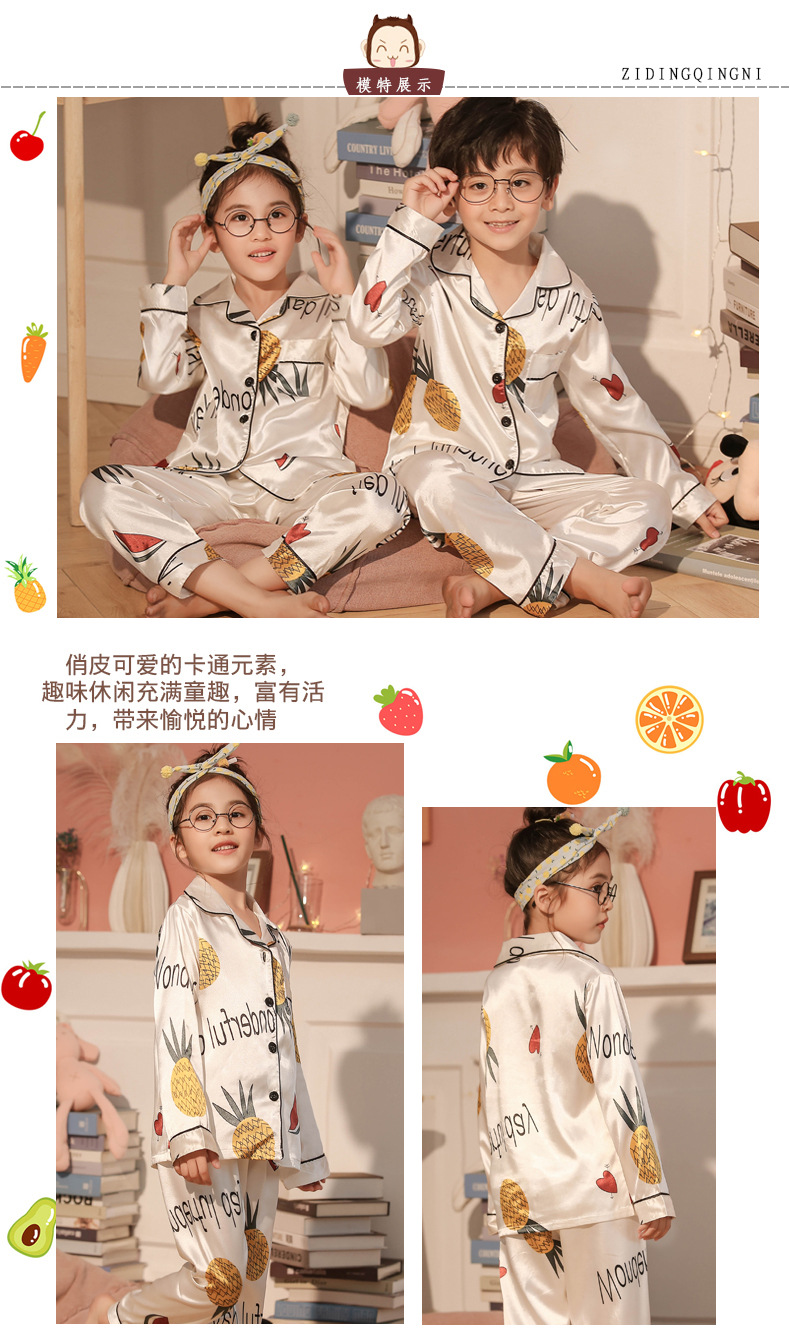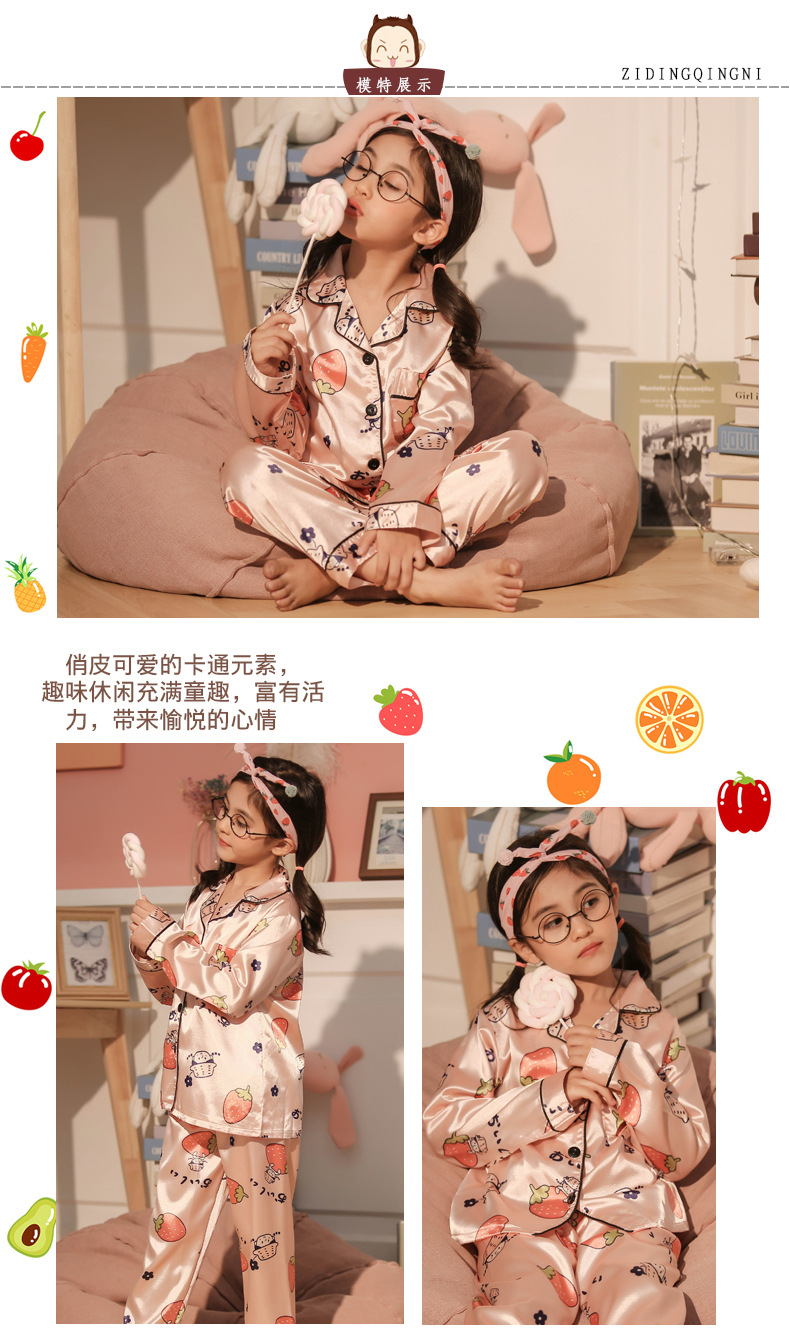 새로운 소녀 잠옷 봄과 가을 긴 소매 얼음 실크 얇은 세트 어린이 소녀 서양식 큰 아이들의 집 옷 도매스토어 가기