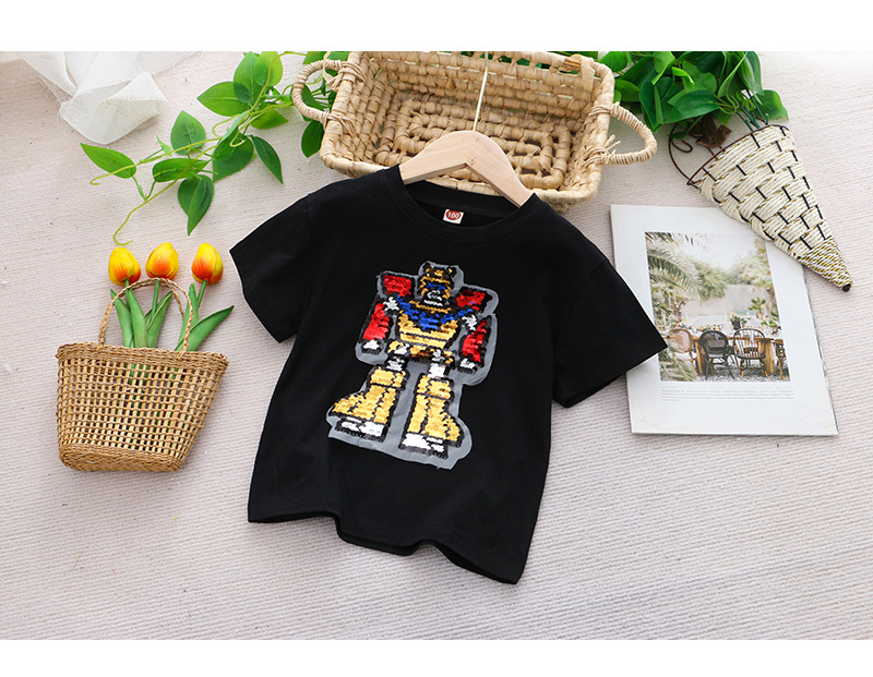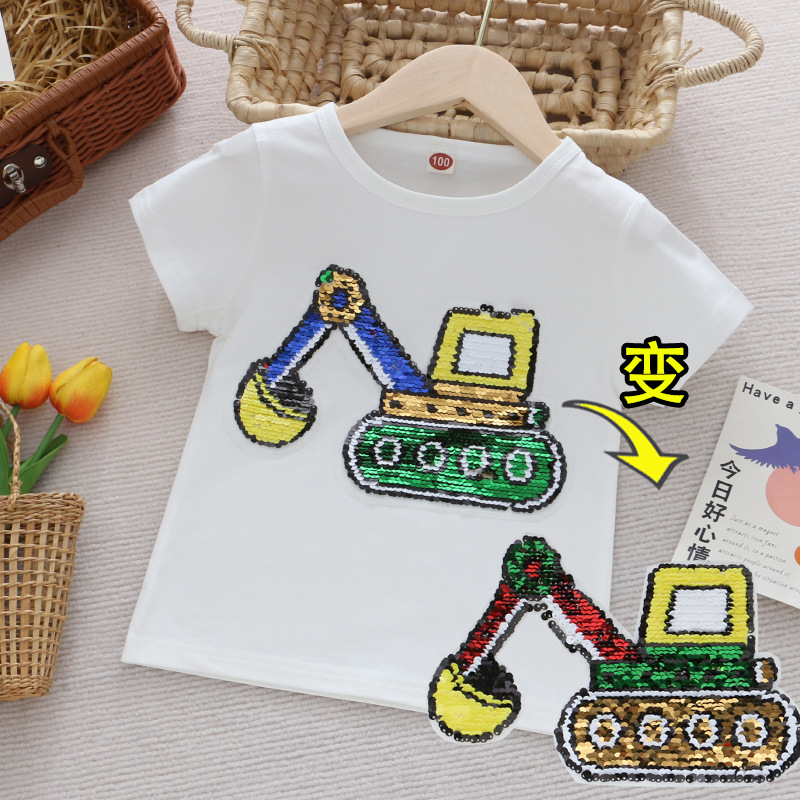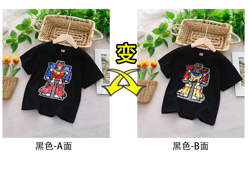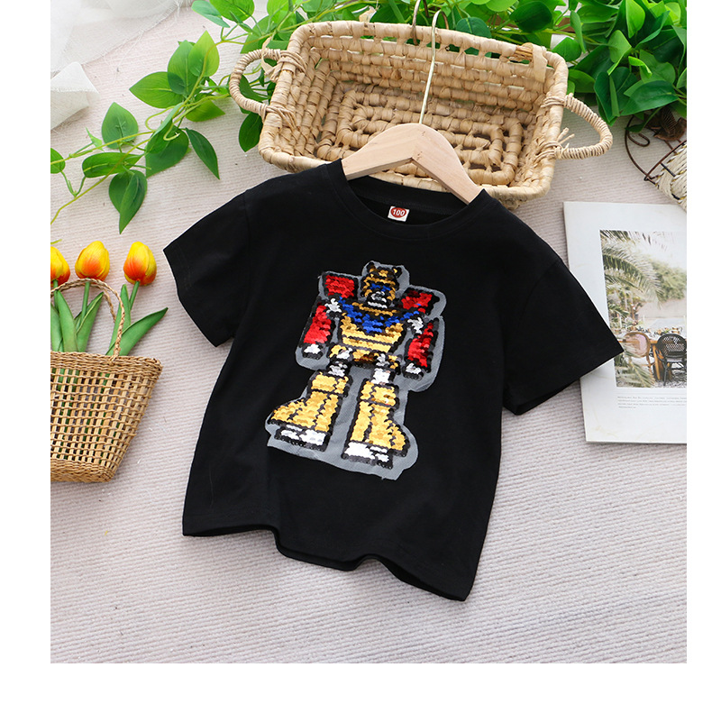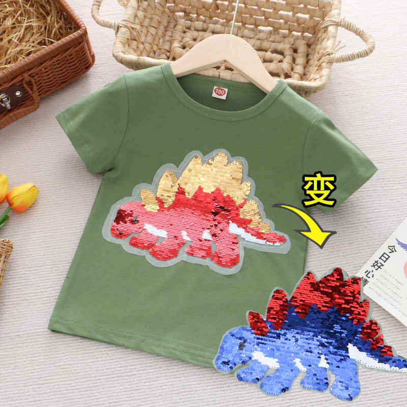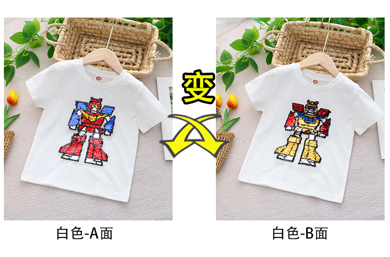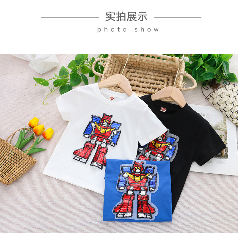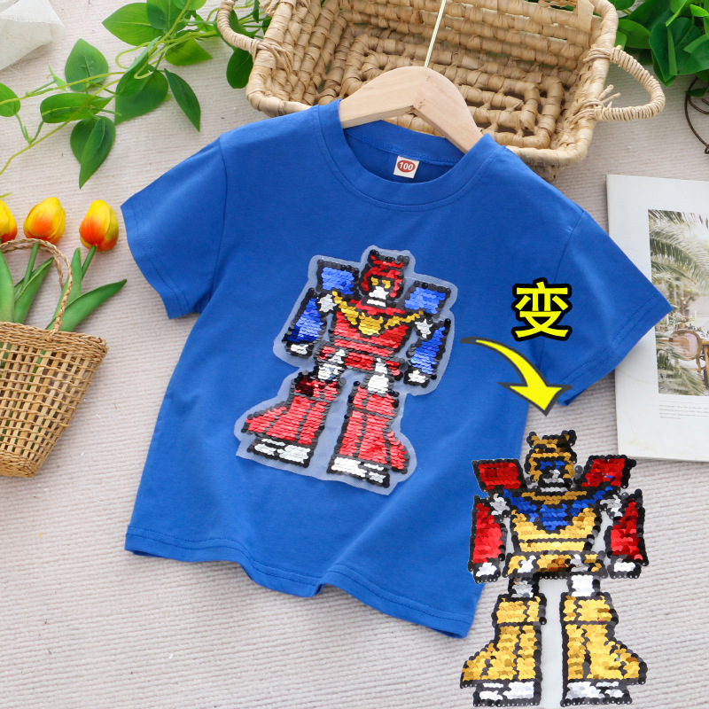 25 어린이 여름 아동복 소년 짧은 소매 티셔츠 색상 변경 스팽글 슈퍼맨 영웅 옷 해외 무역 머리카락 세대