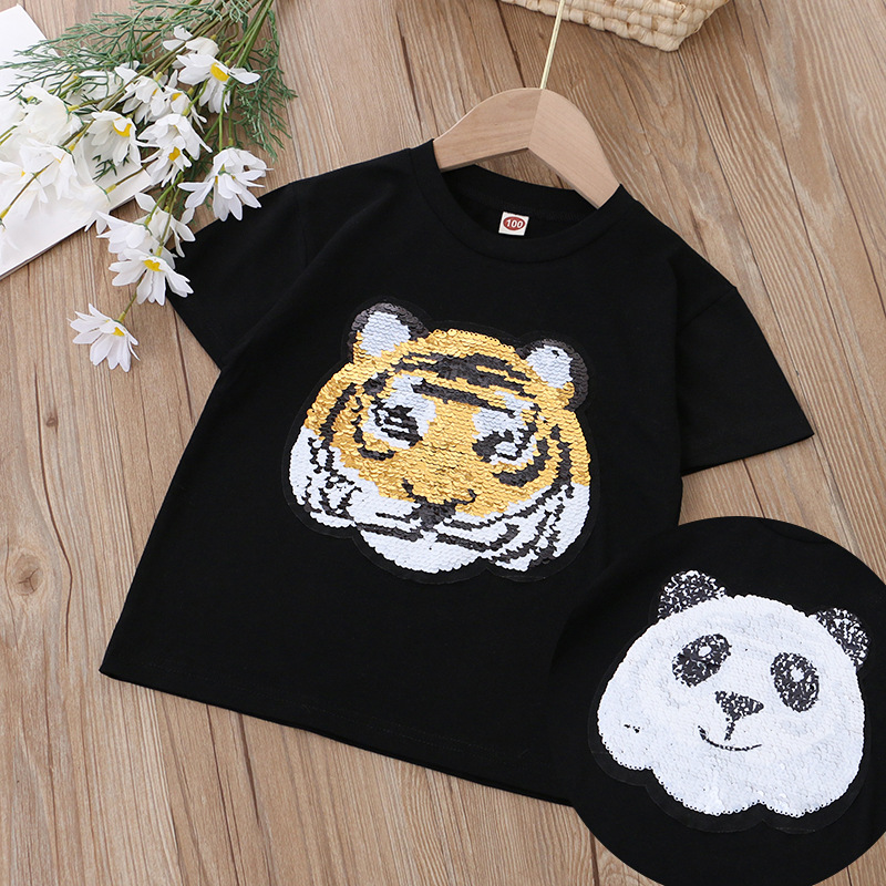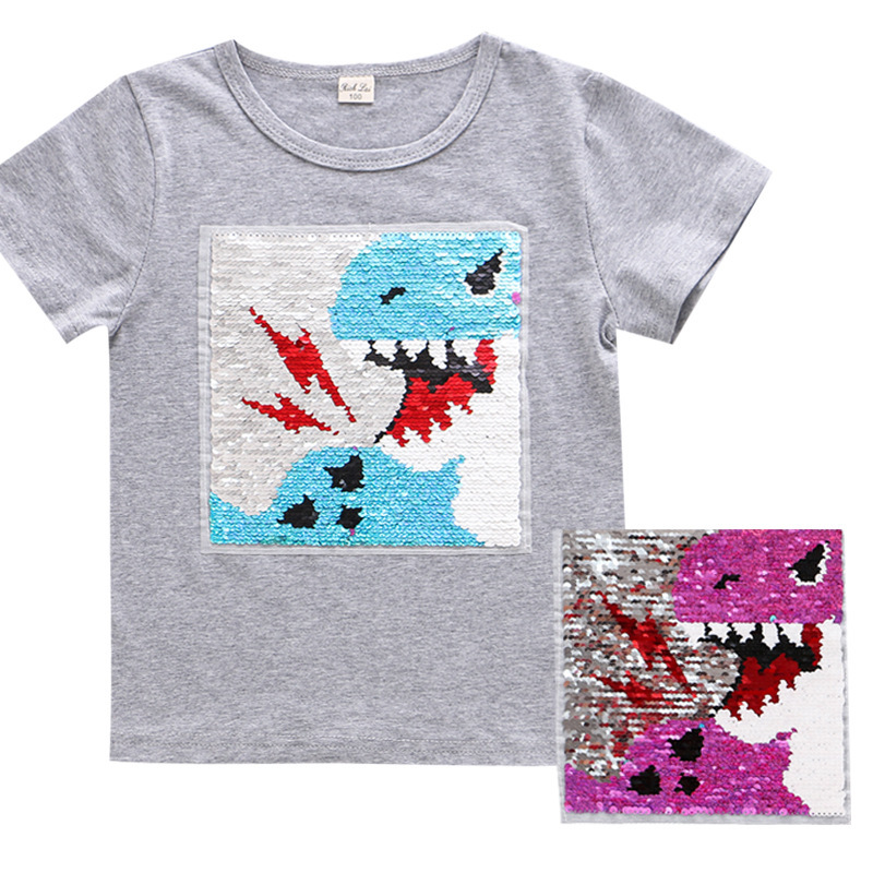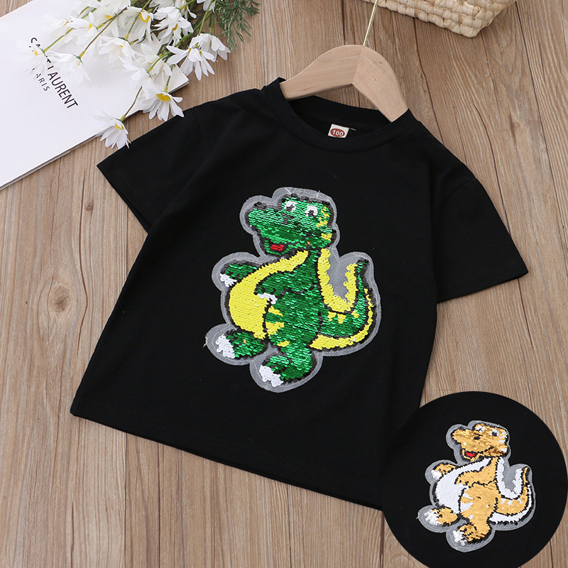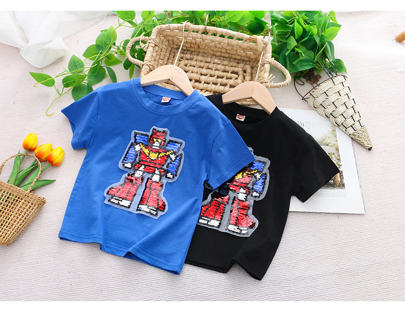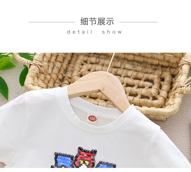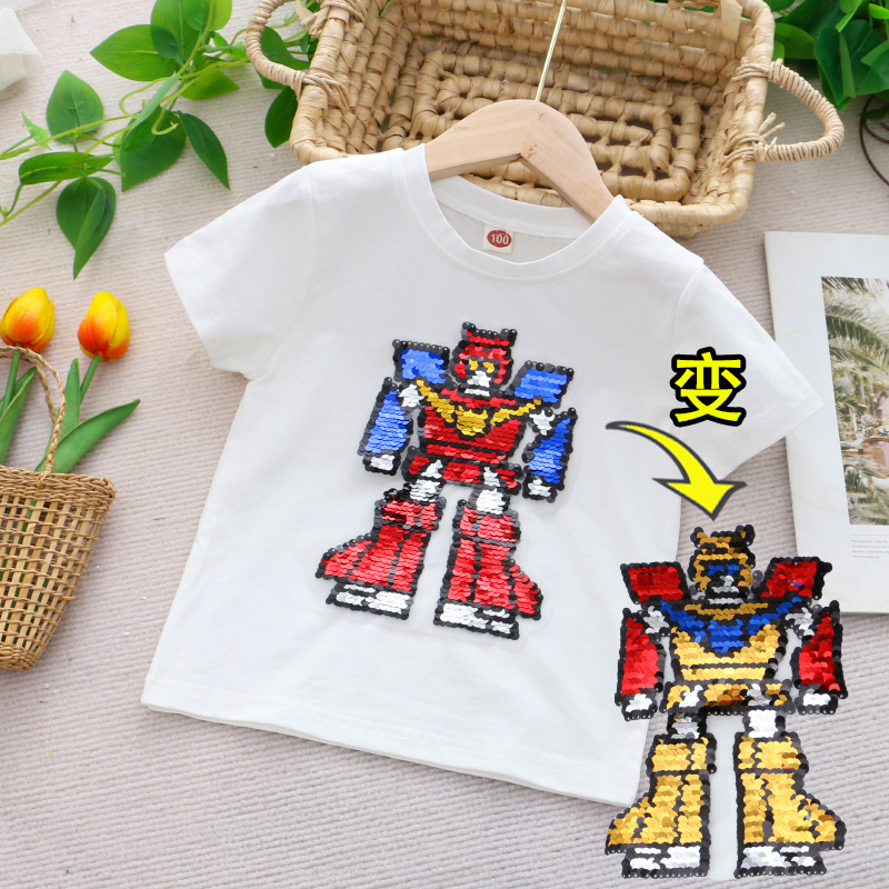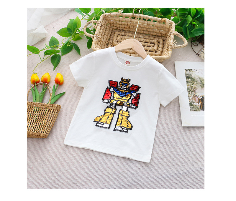 25 어린이 여름 아동복 소년 짧은 소매 티셔츠 색상 변경 스팽글 슈퍼맨 영웅 옷 해외 무역 머리카락 세대