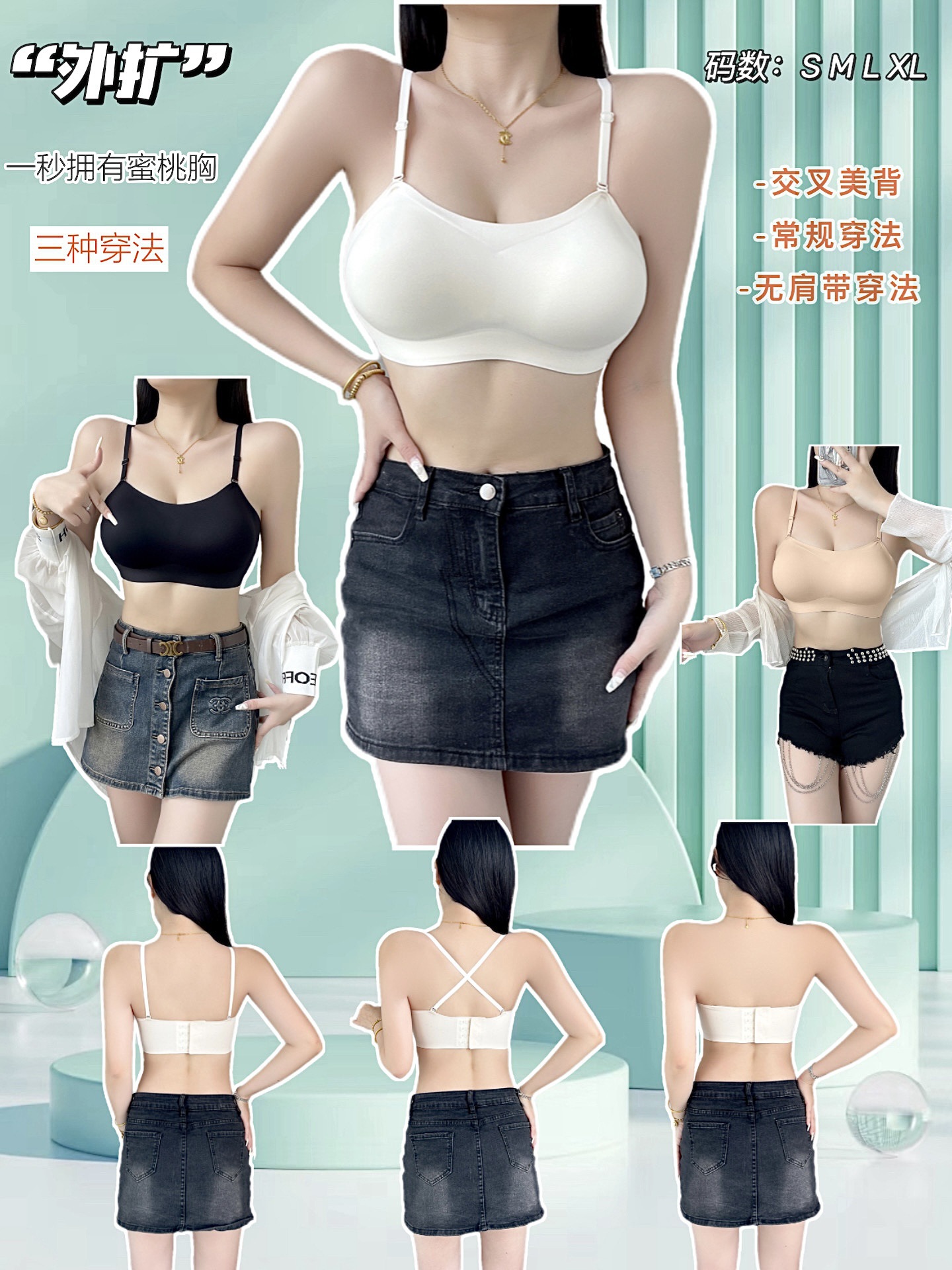 여름 스트랩리스 연장 4cm 큰 컵 소녀의 단색 브래지어 원피스 원활한 올매치 브라스토어 가기