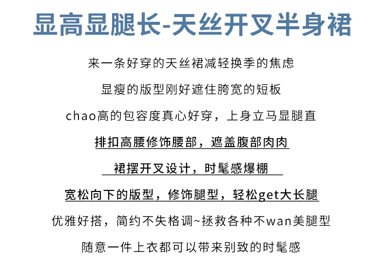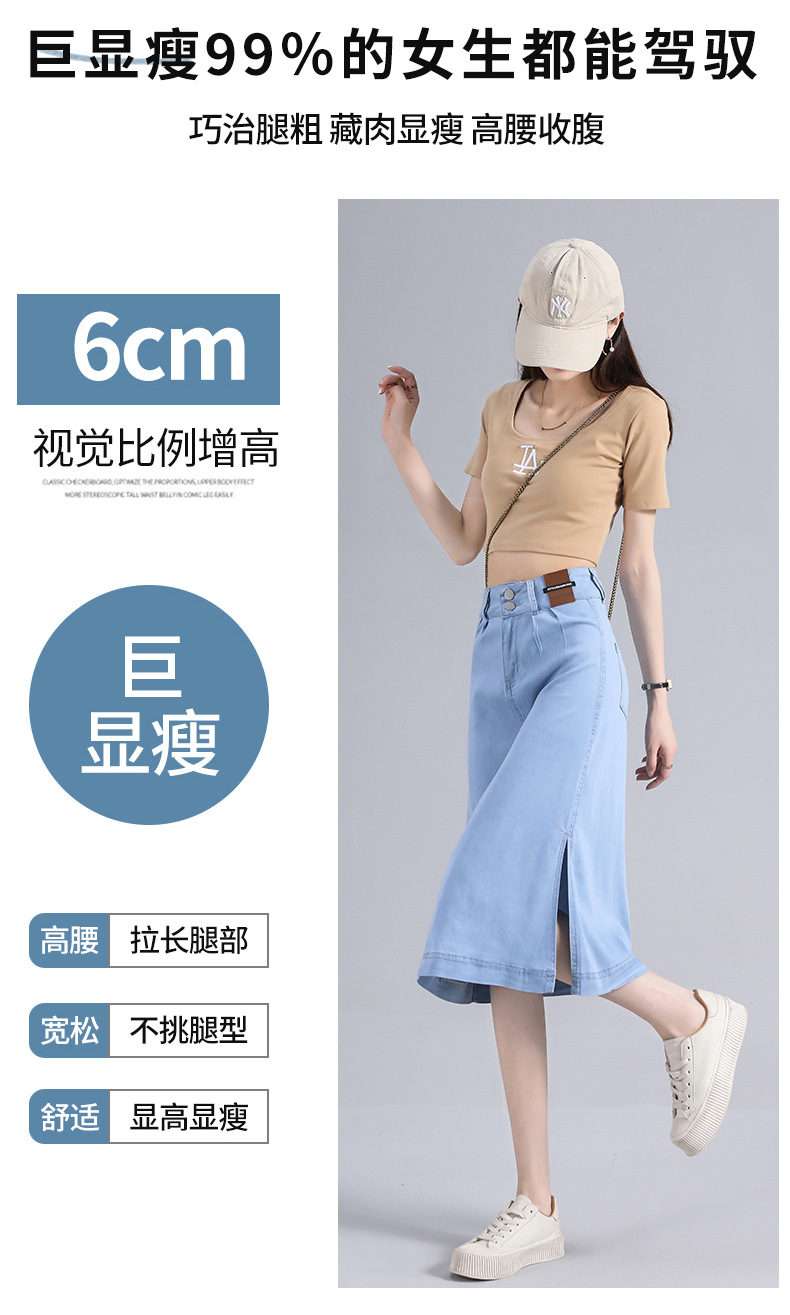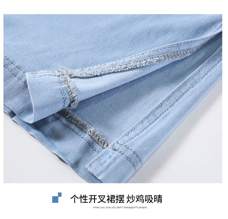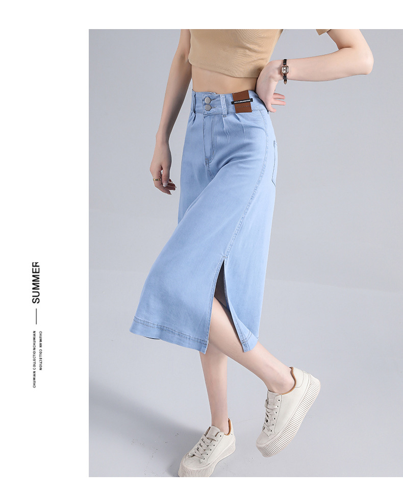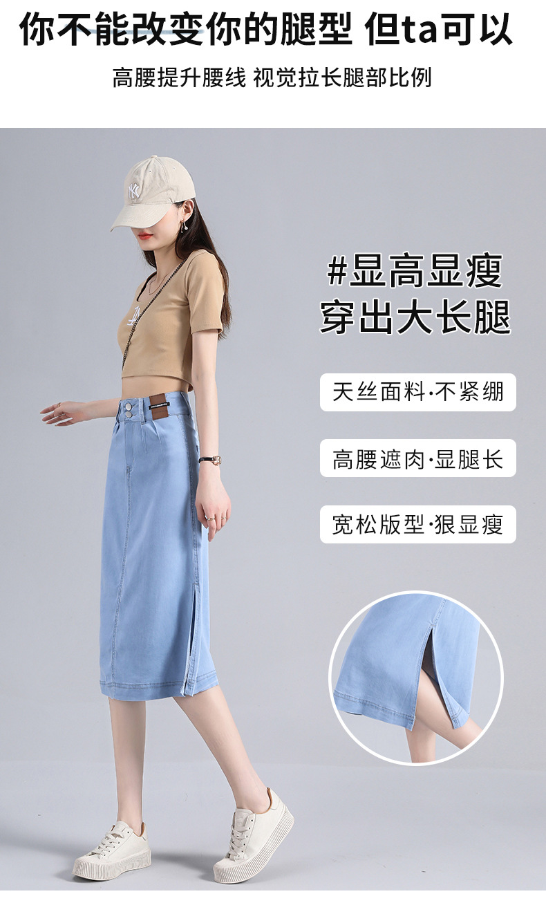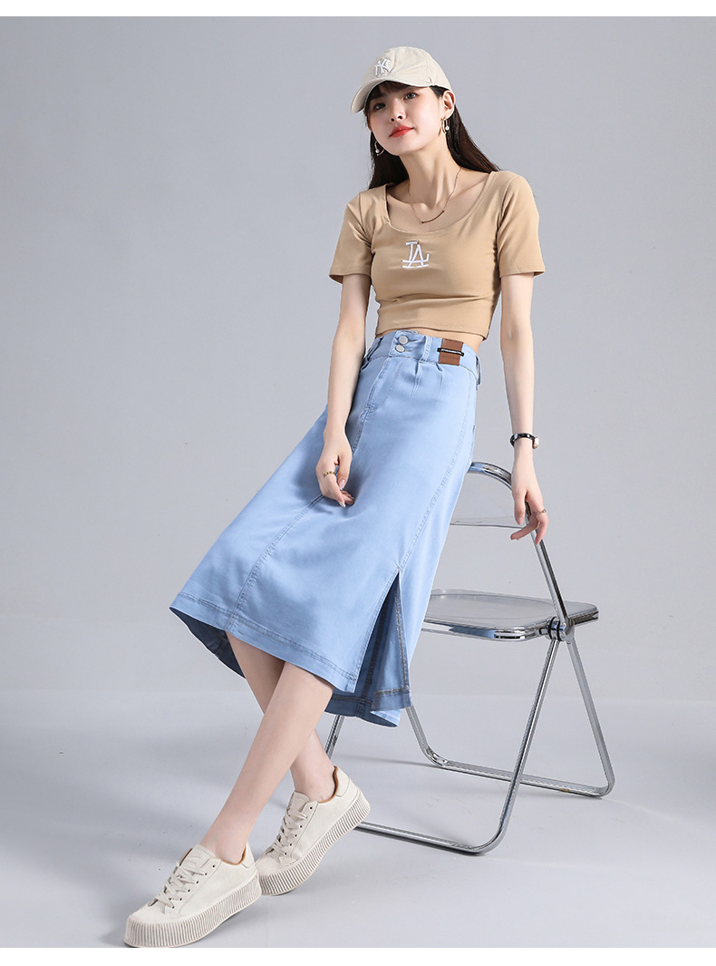 라이트 블루 높은 웨이스트 텐셀 데님 스커트 여자 2024 년 여름 새로운 도착 사이드 스플릿 패션 올 매치 통기성 스커트스토어 가기