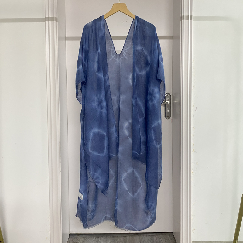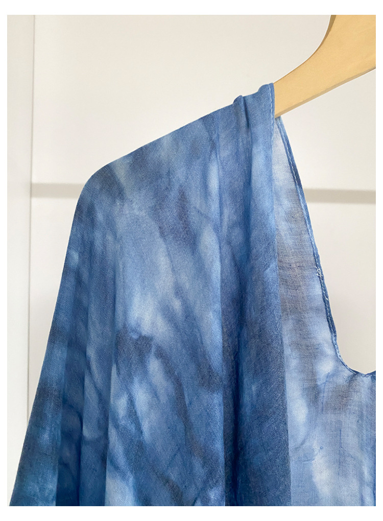 [공 페이 목도리] 복고풍 윈난 타이 염료 블루 염료 민족 스타일 슬릿 목도리 여성의 고급 자외선 차단제 목도리