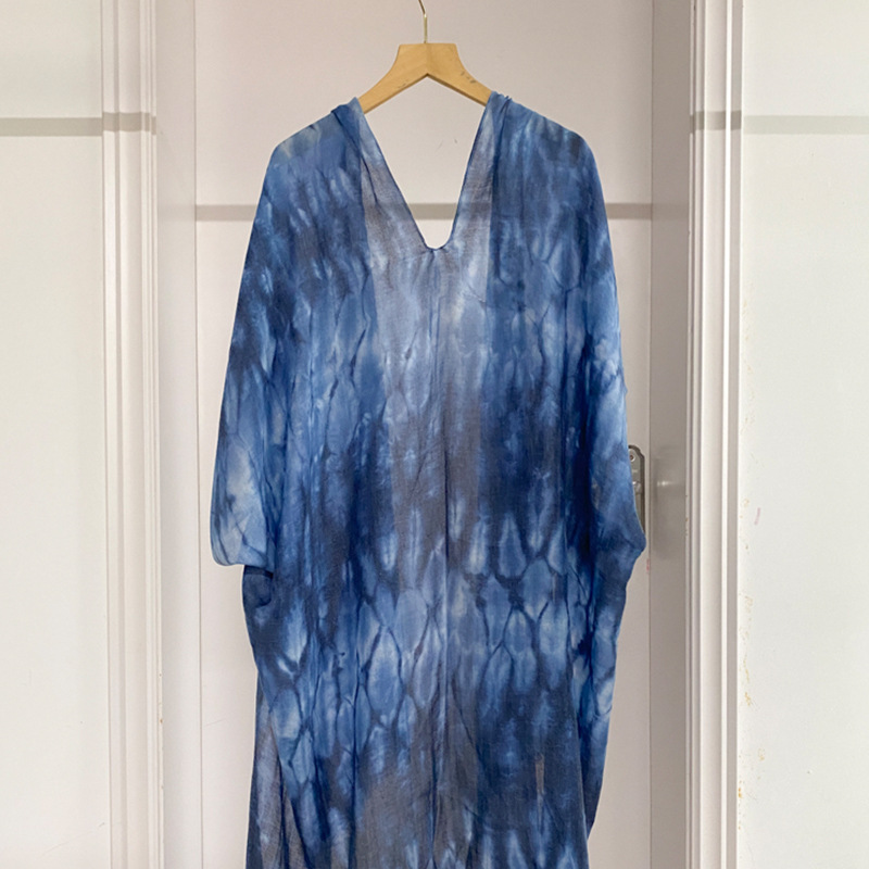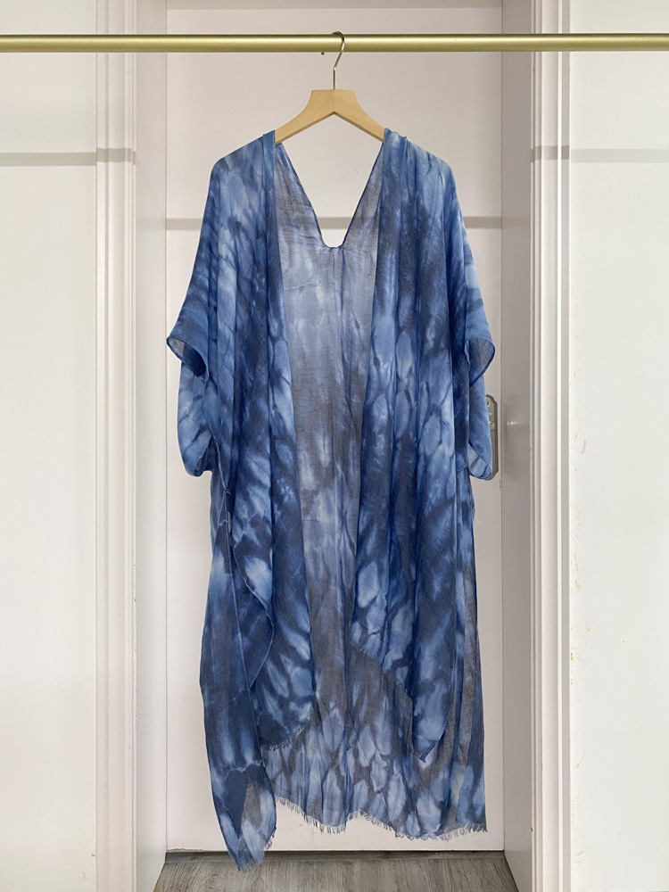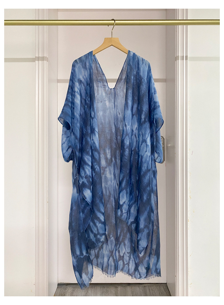 [공 페이 목도리] 복고풍 윈난 타이 염료 블루 염료 민족 스타일 슬릿 목도리 여성의 고급 자외선 차단제 목도리스토어 가기