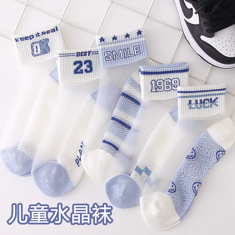 여자 여름 얇은 얼음 스타킹 어린이 크리스탈 여름 초박형 실크 스타킹 메쉬 짧은 양말 통기성 아기 짧은 양말