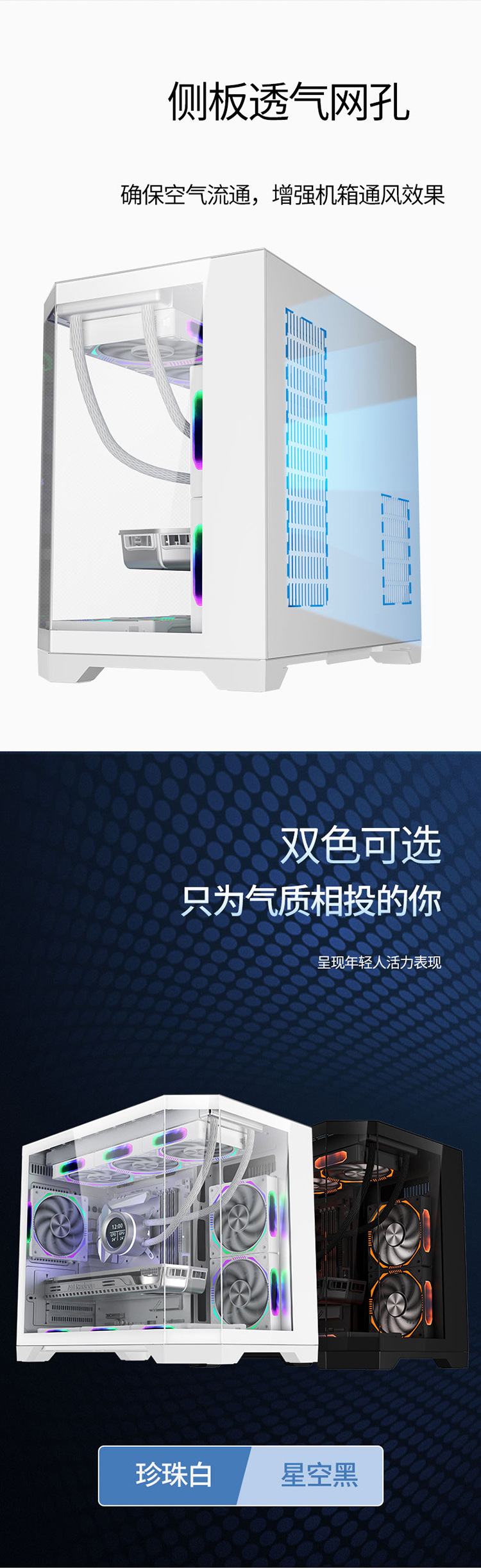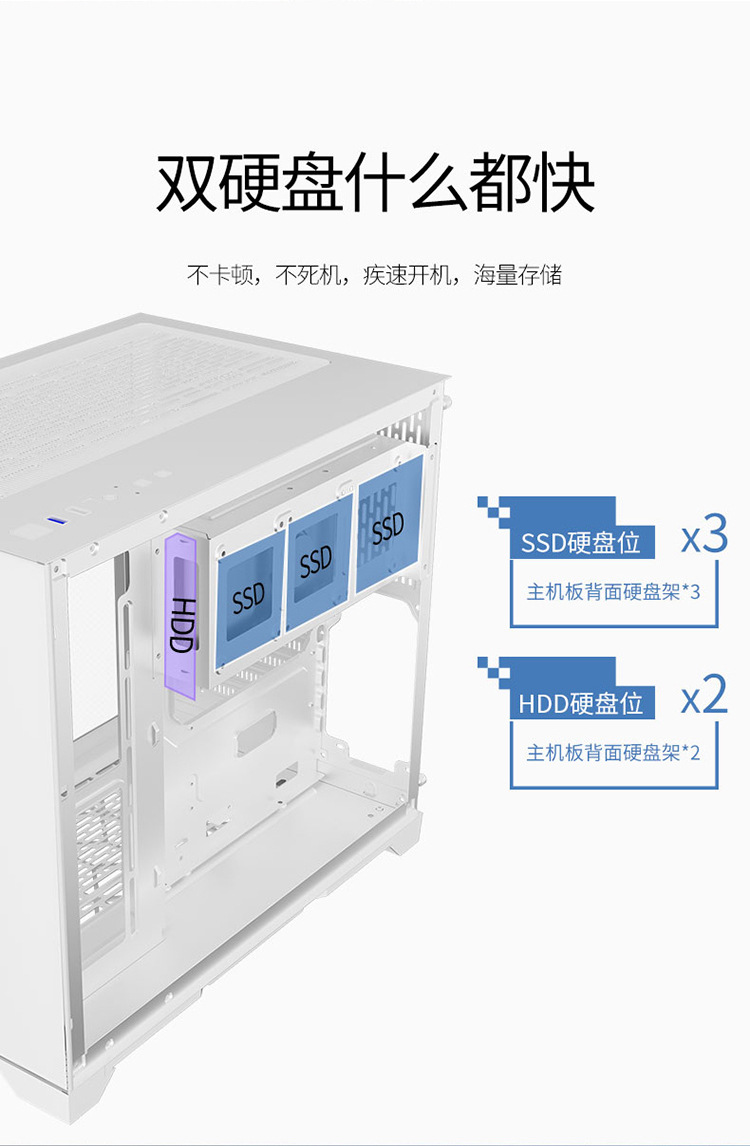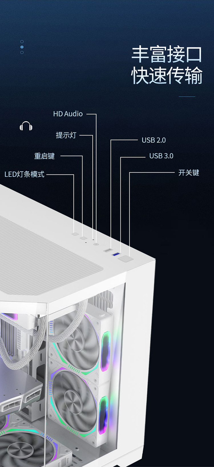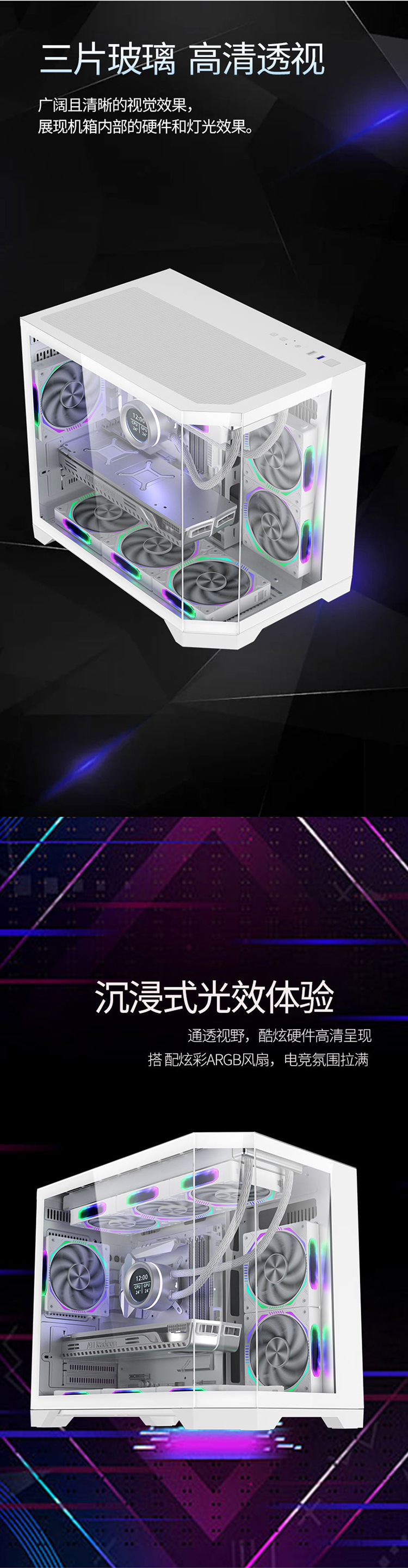 全景光效双硬盘台式电脑机箱三面钢化玻璃M-ATX电竞机箱