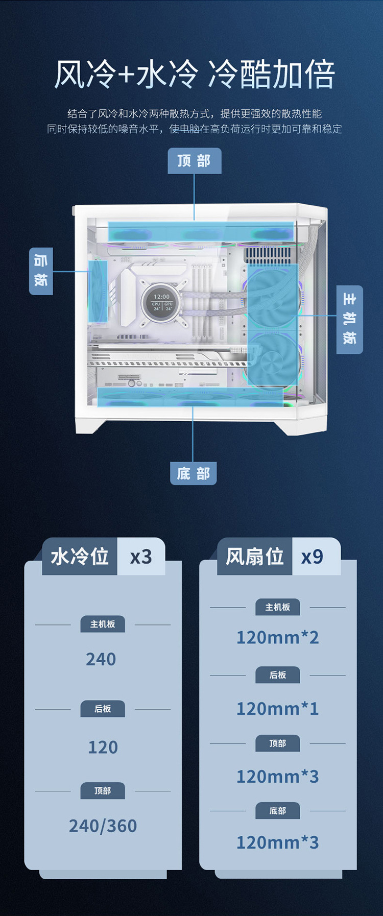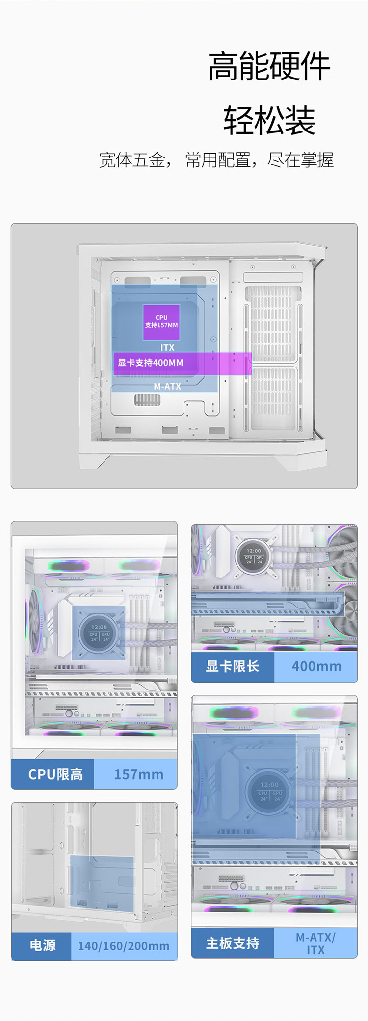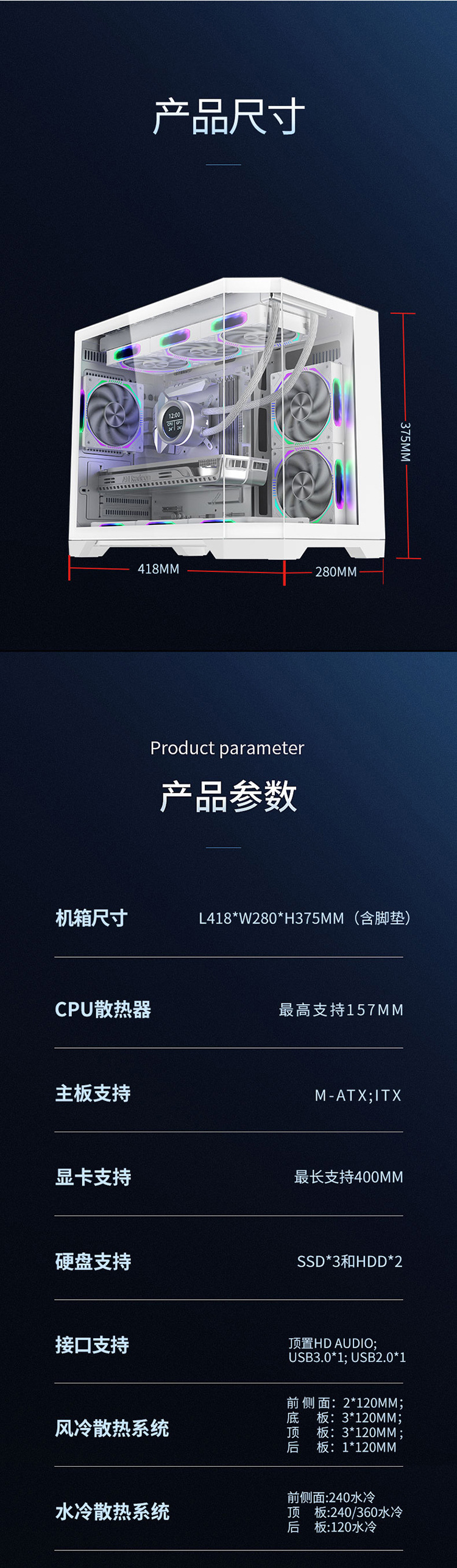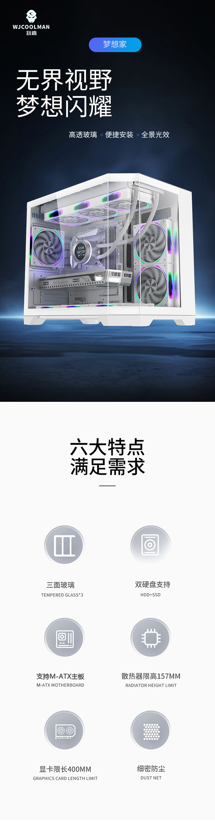 全景光效双硬盘台式电脑机箱三面钢化玻璃M-ATX电竞机箱