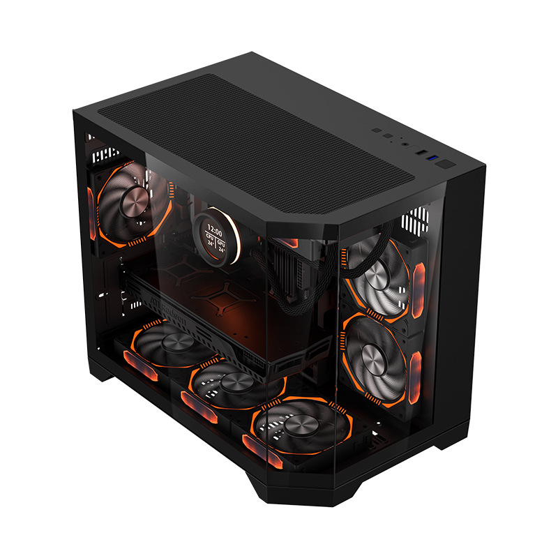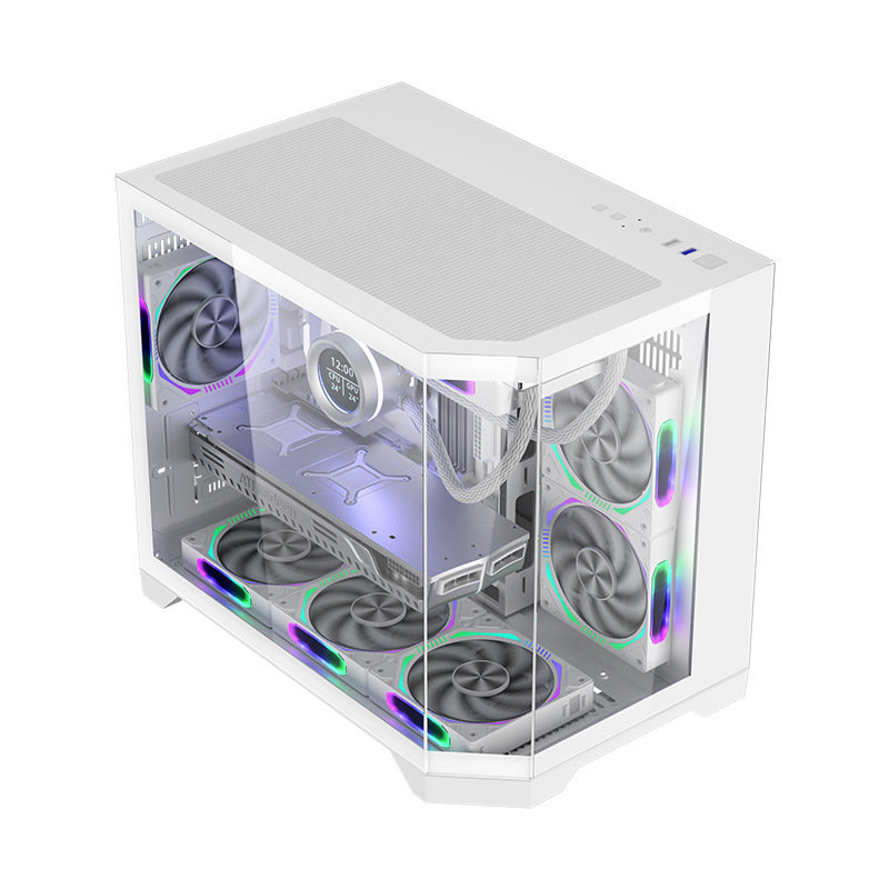 파노라마 조명 효율 듀얼 디스크 데스크탑 컴퓨터 케이스 3 면 강화 유리 M-ATX e 스포츠 케이스