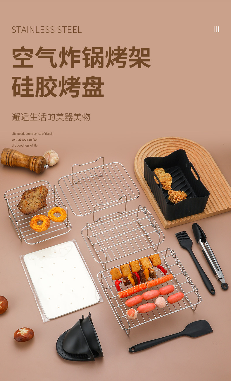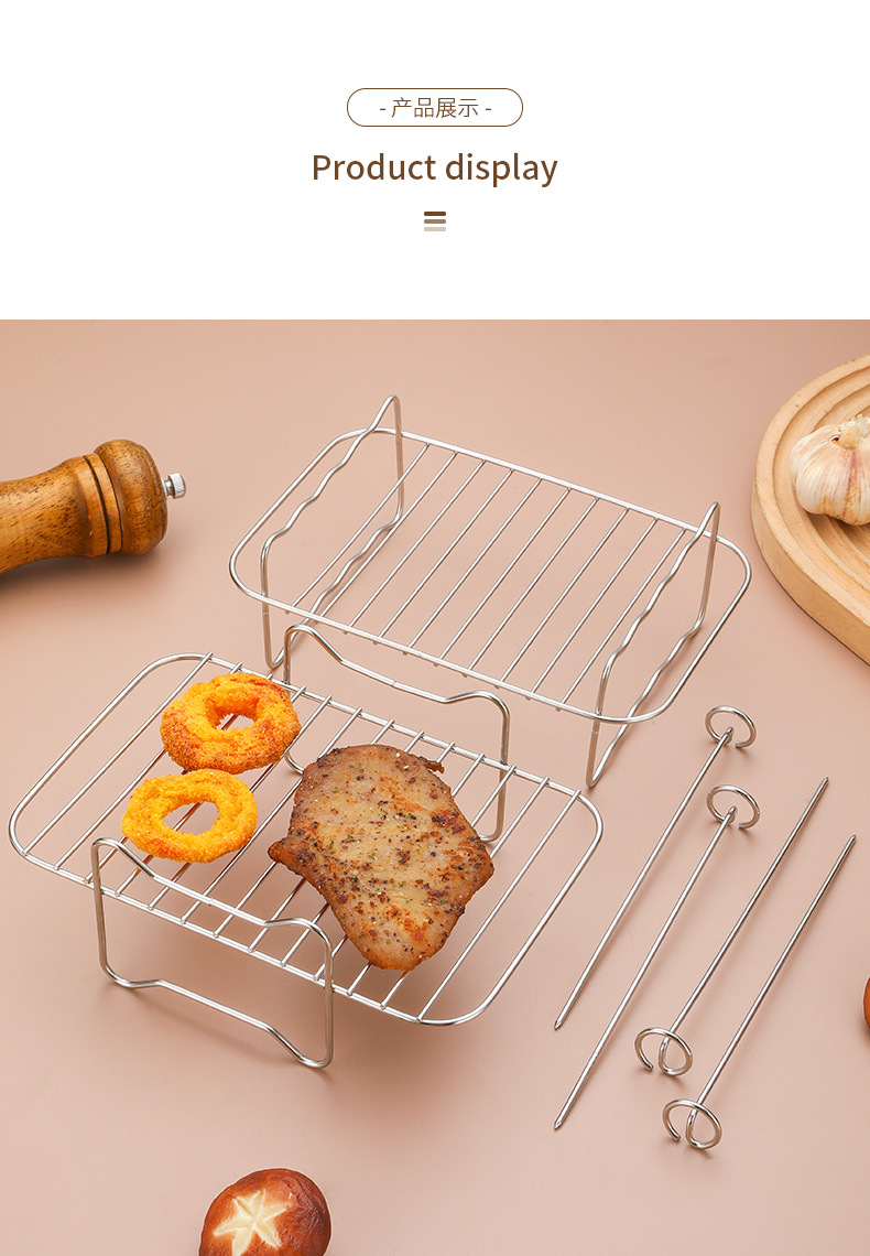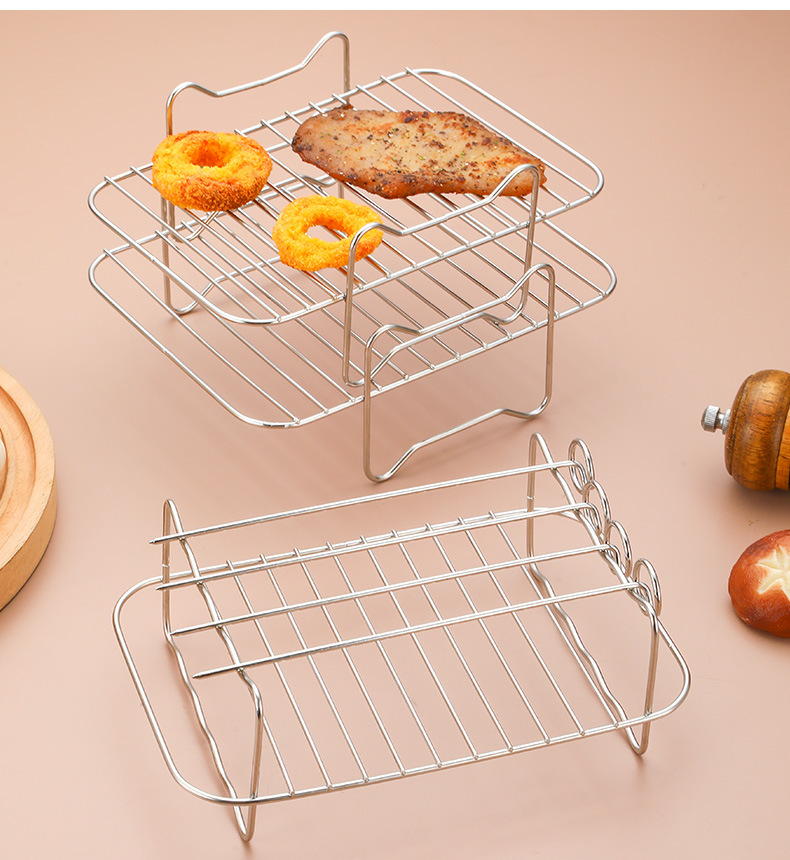 국경 간 핫 세일 201 스테인레스 스틸 더블 레이어 그릴 스팀 랙 재고 가정용 더블 포트 다기능 에어 프라이어 액세서리