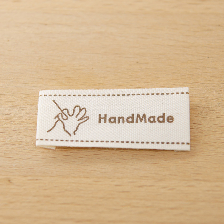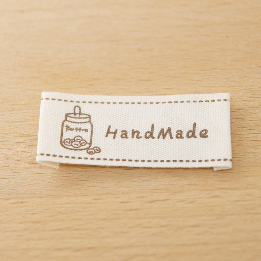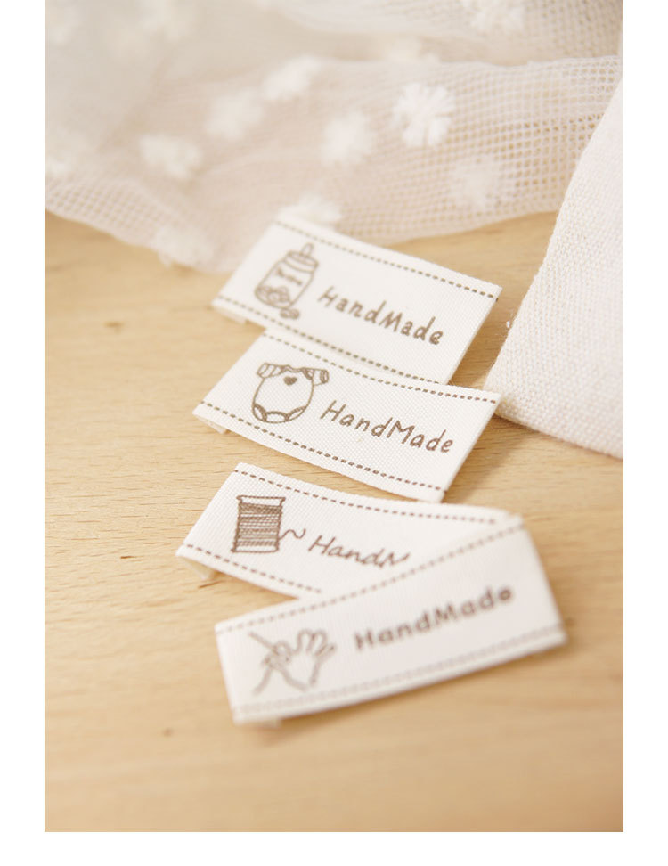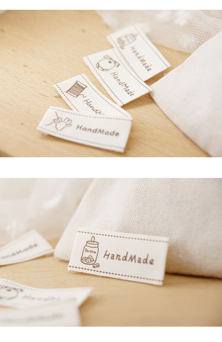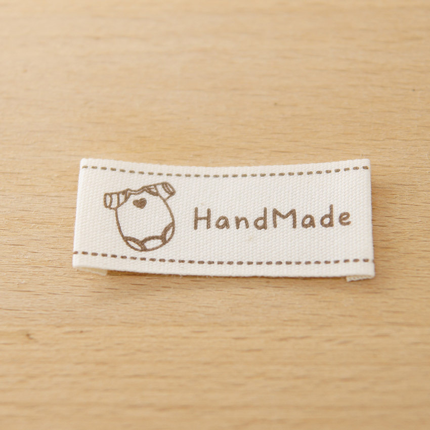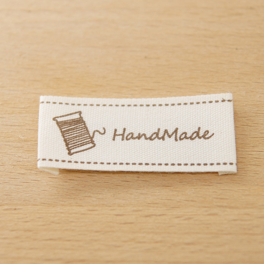 순수 코튼 재고 수제 인쇄 마크 천 라벨 폴드 엣지 다크 브라운 컬러 인형 핀 슬립 Sum 라벨 액세서리 바느질 새로운 스타일