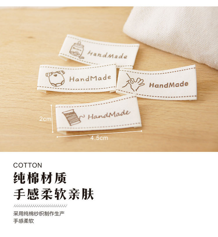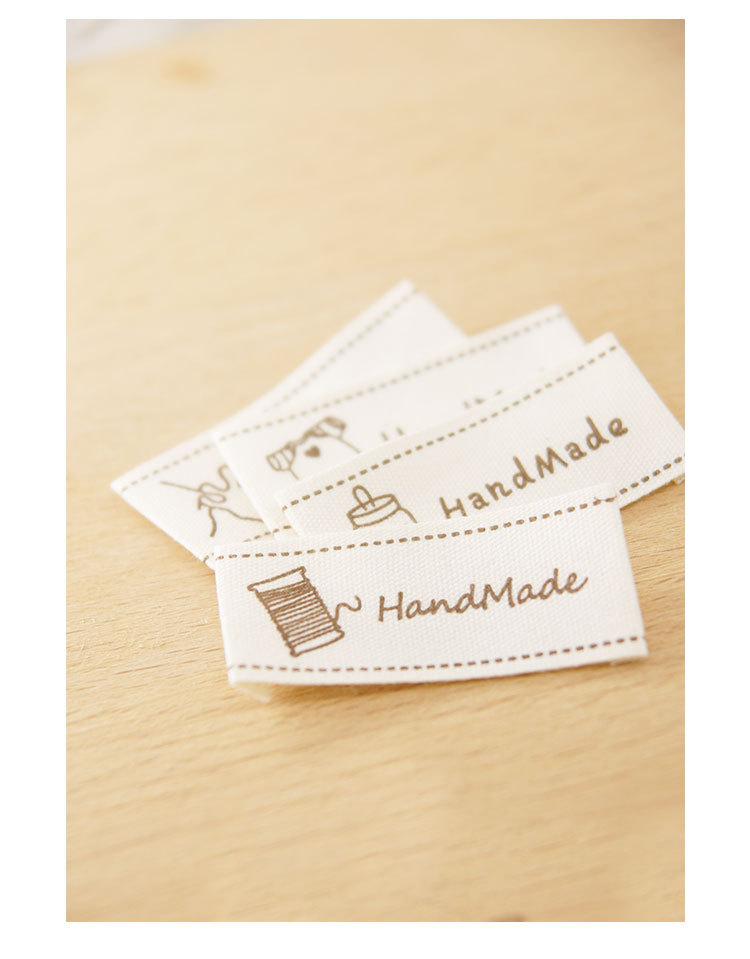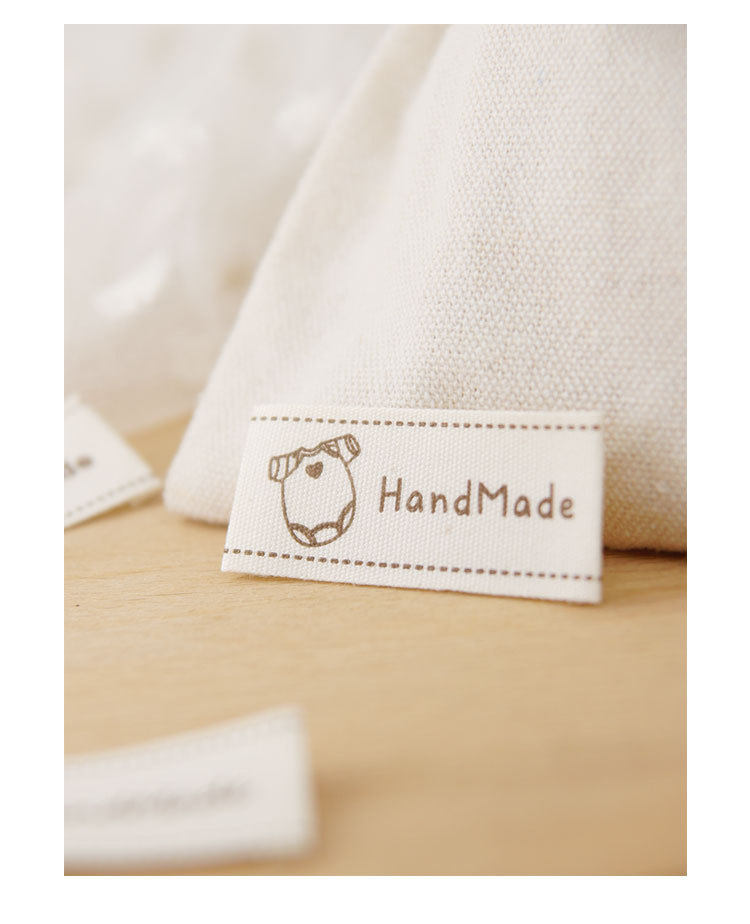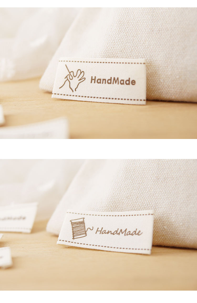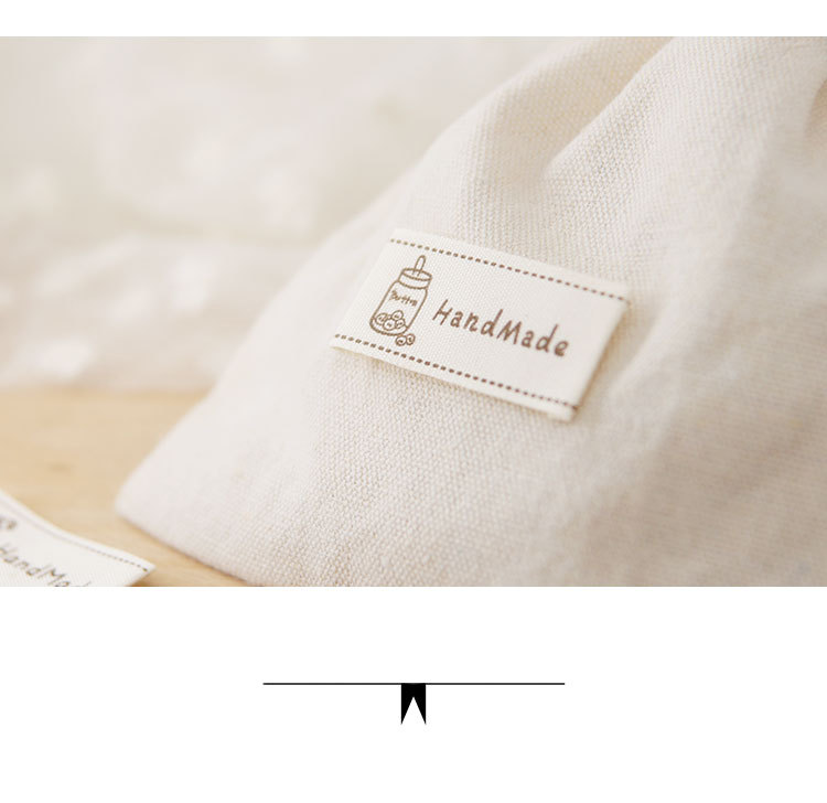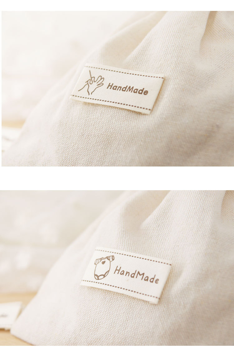 순수 코튼 재고 수제 인쇄 마크 천 라벨 폴드 엣지 다크 브라운 컬러 인형 핀 슬립 Sum 라벨 액세서리 바느질 새로운 스타일스토어 가기