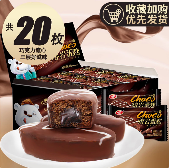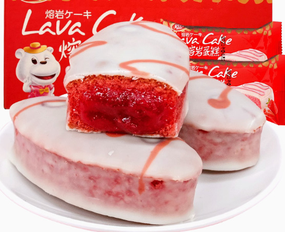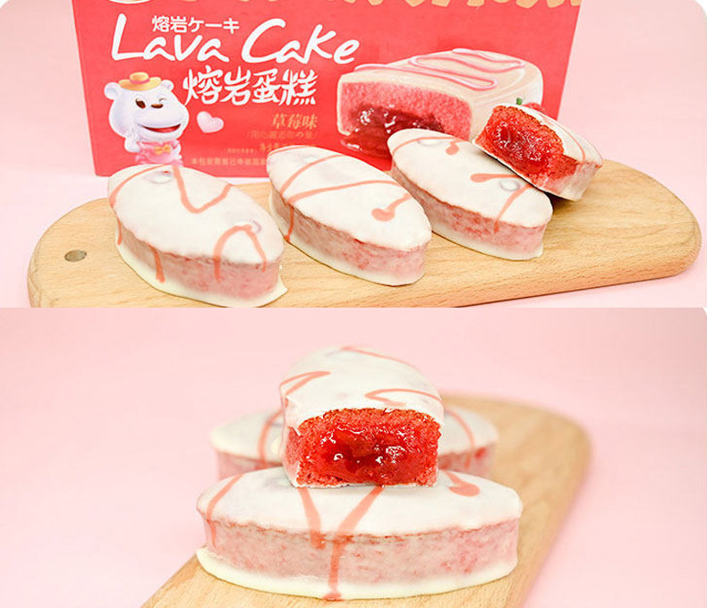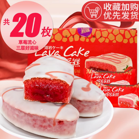 Qifen 초콜릿 용암 케이크 전체 상자 20 딸기 흐름 심장 빵 대체 현성 아침 식사 간식스토어 가기