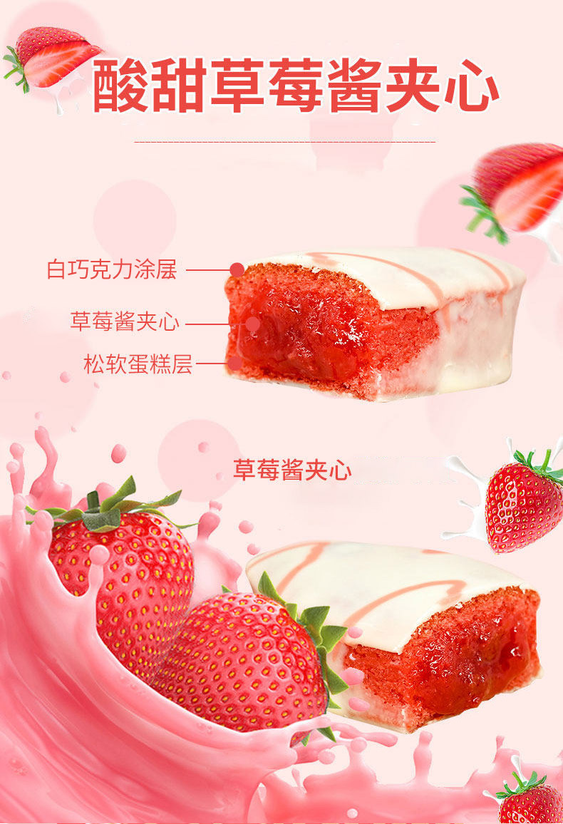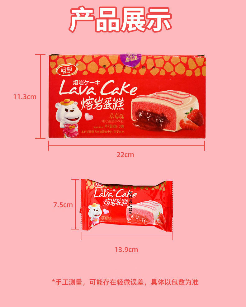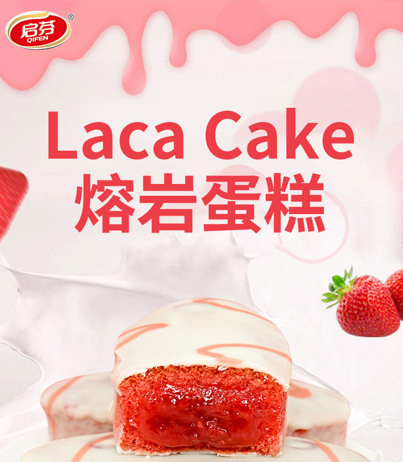 Qifen 초콜릿 용암 케이크 전체 상자 20 딸기 흐름 심장 빵 대체 현성 아침 식사 간식
