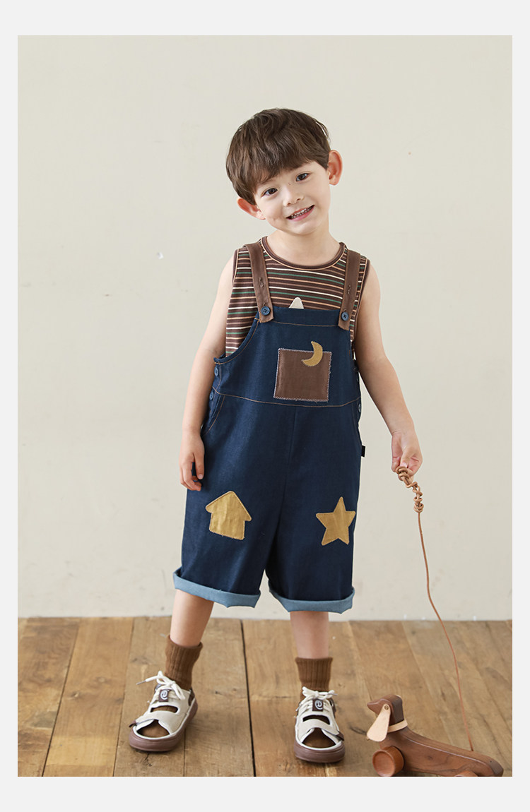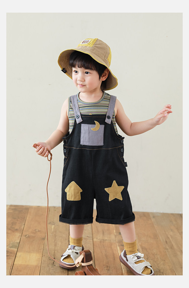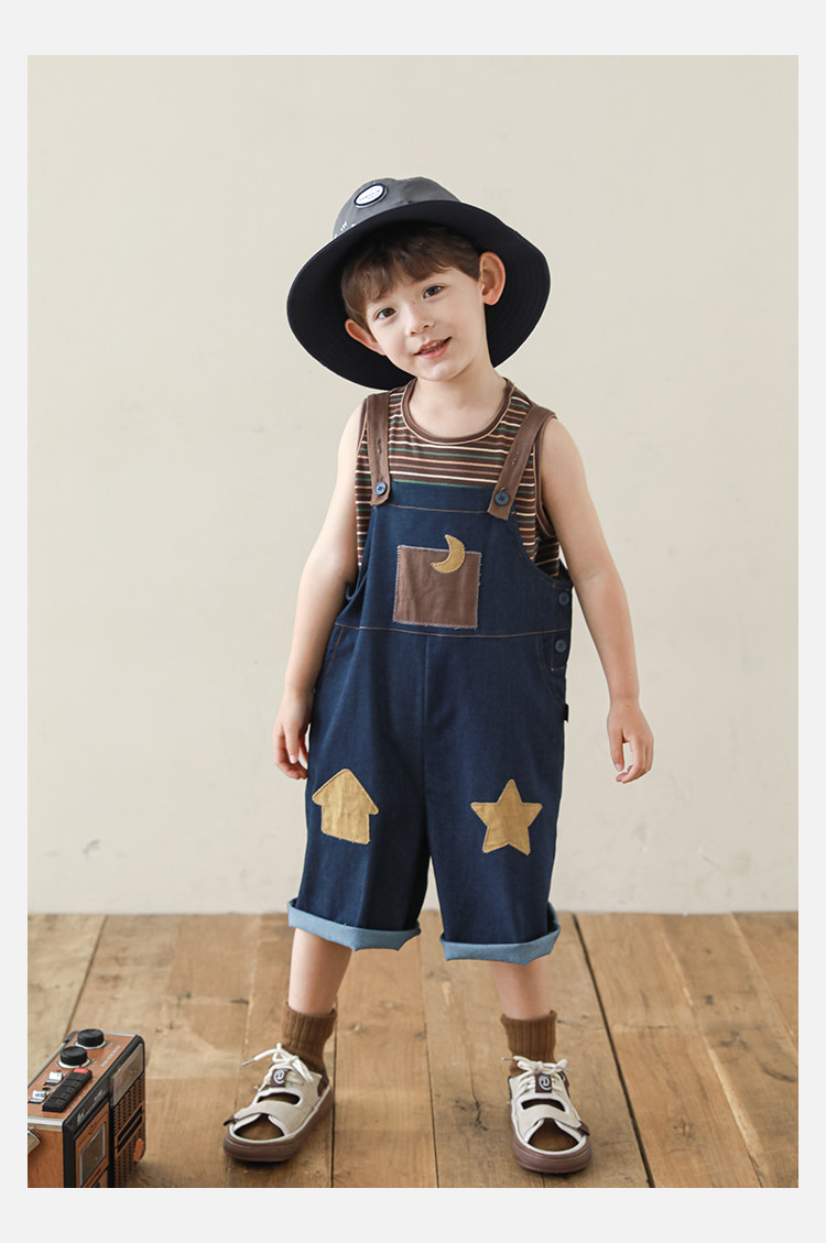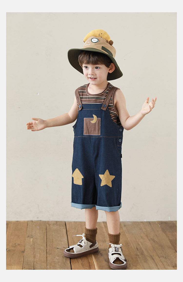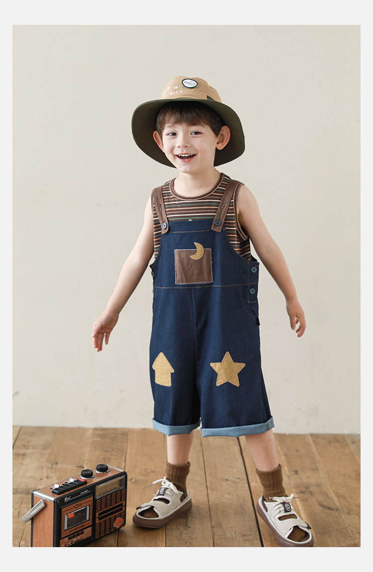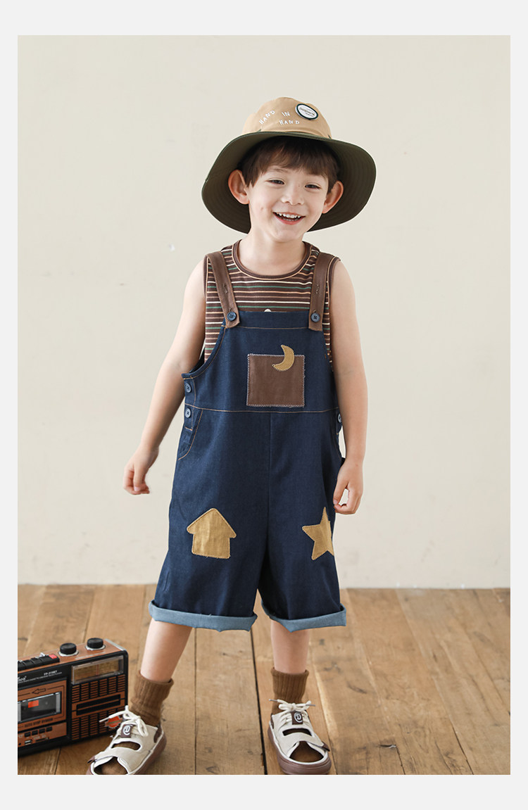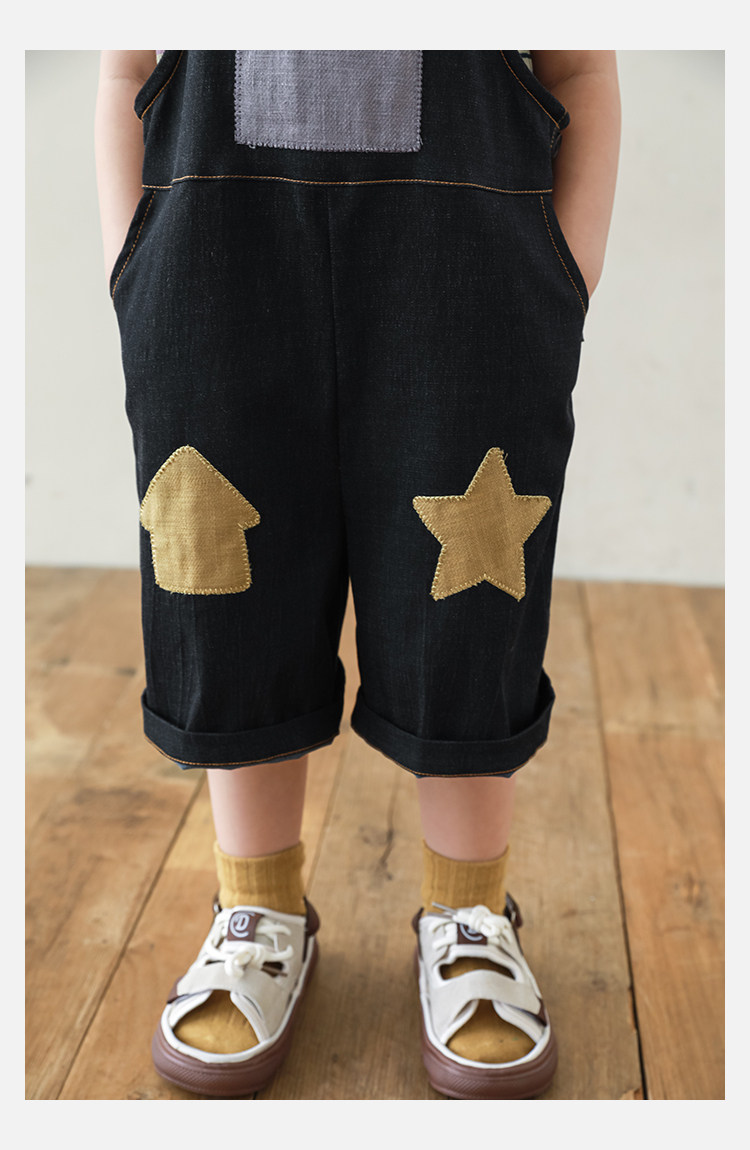 우리부이데님 남아용 작업복 바지 2026년 신상품 가볍고 통기성 좋은 별 패치가 있는 스타일리쉬한 아동 바지 트렌디