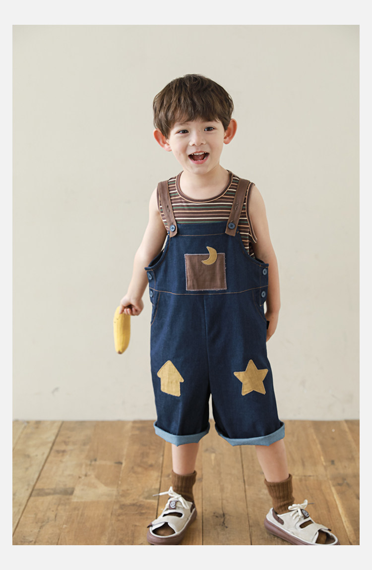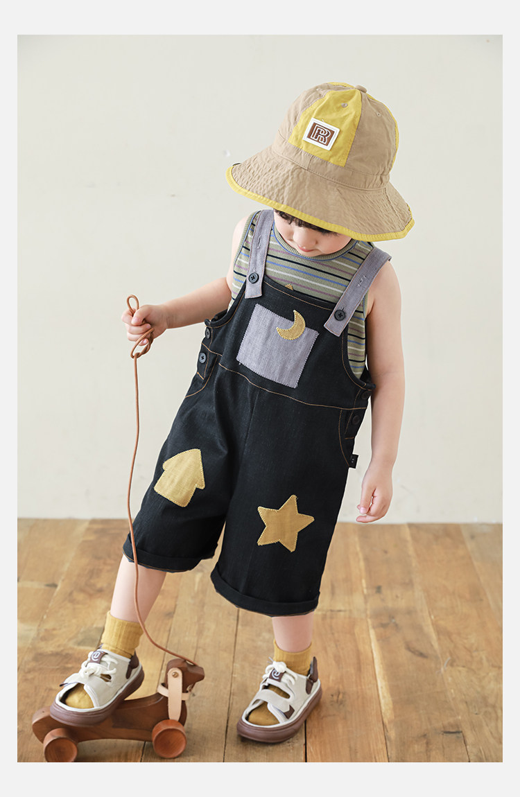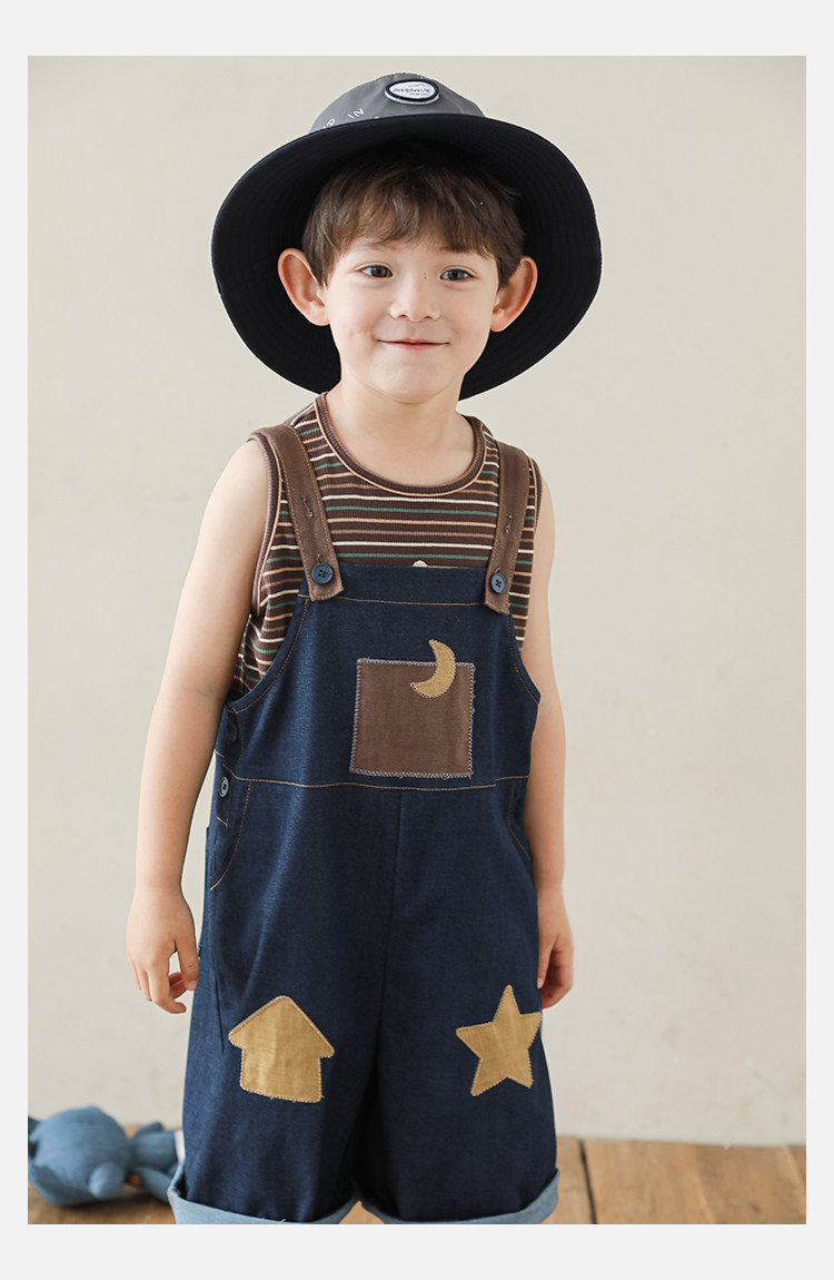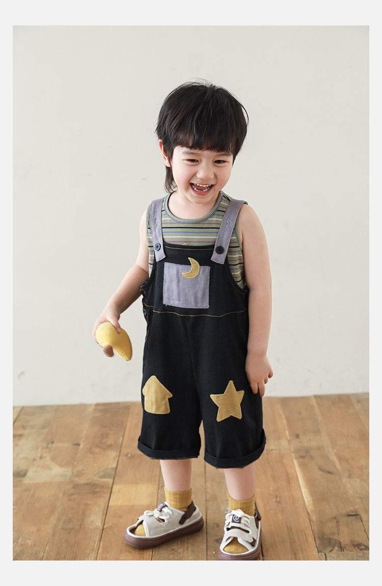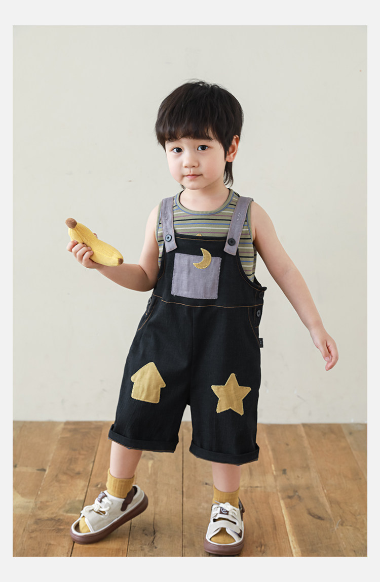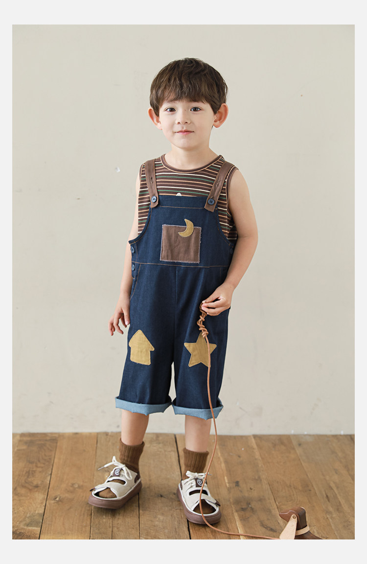 우리부이데님 남아용 작업복 바지 2026년 신상품 가볍고 통기성 좋은 별 패치가 있는 스타일리쉬한 아동 바지 트렌디