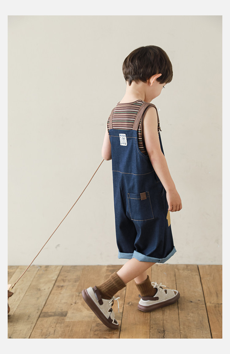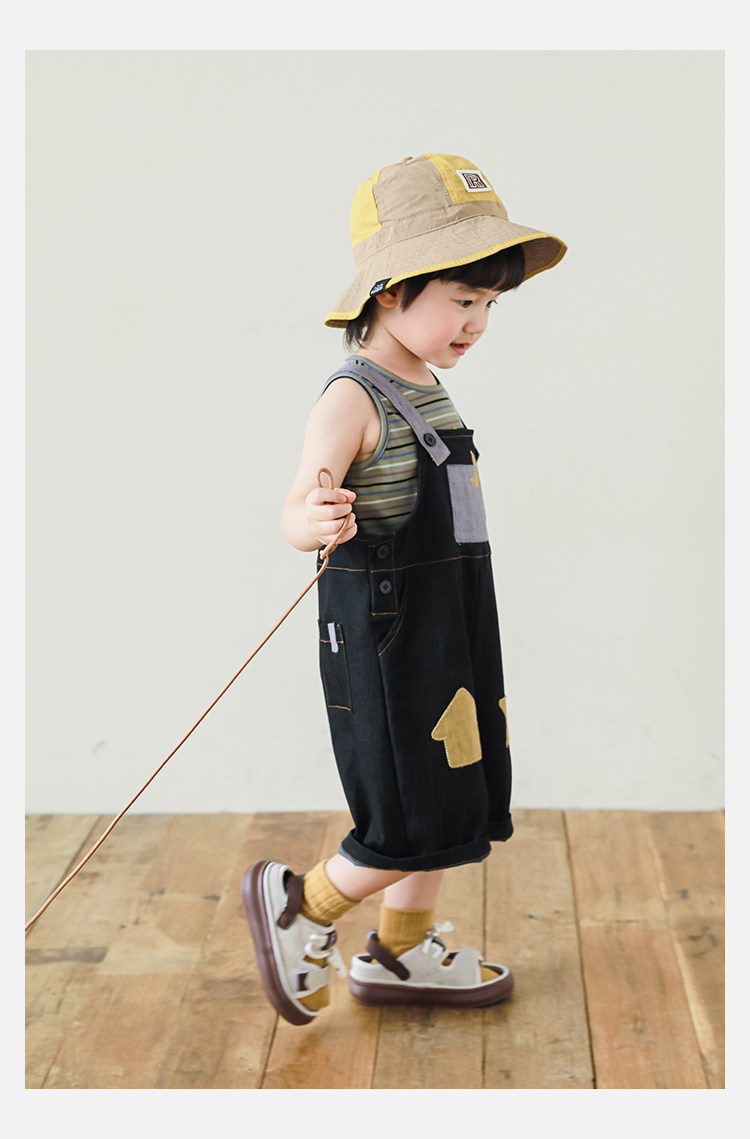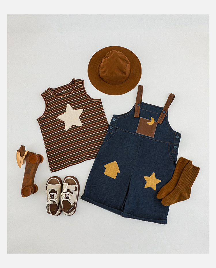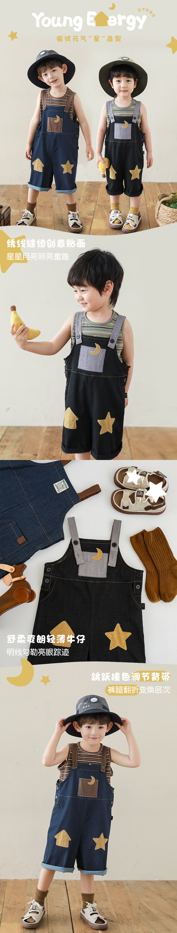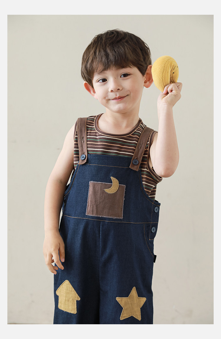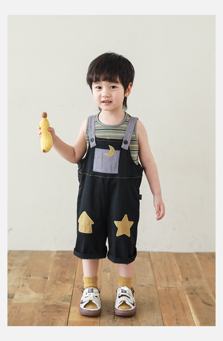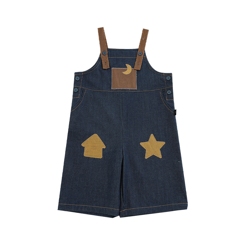 우리부이데님 남아용 작업복 바지 2026년 신상품 가볍고 통기성 좋은 별 패치가 있는 스타일리쉬한 아동 바지 트렌디
